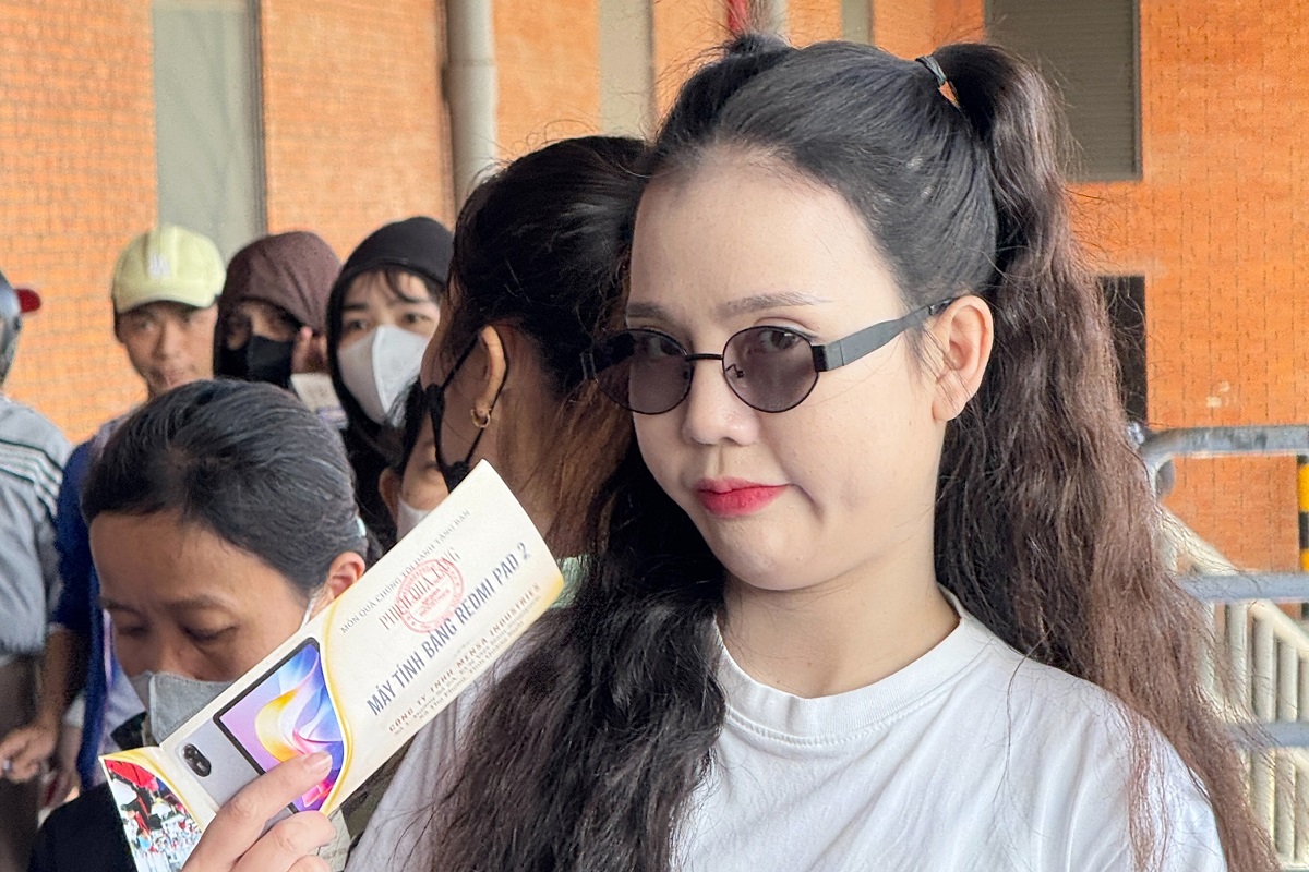 Mensa company workers holding gift vouchers to receive tablets. Photo: Thien Thanh.
