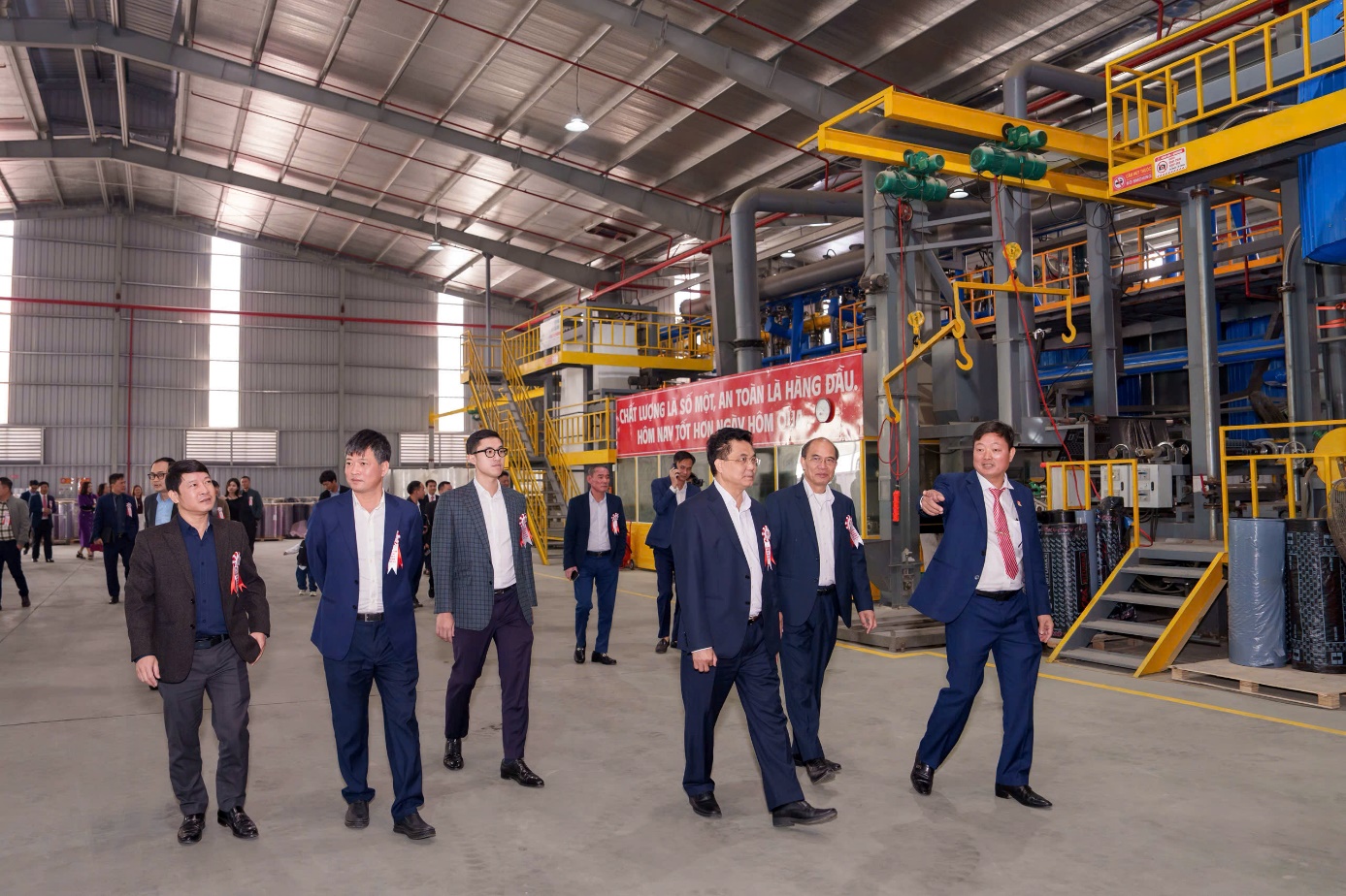 Guests toured the plant and the bitumen waterproofing membrane production line during the event. _Conmik Vietnam_. |