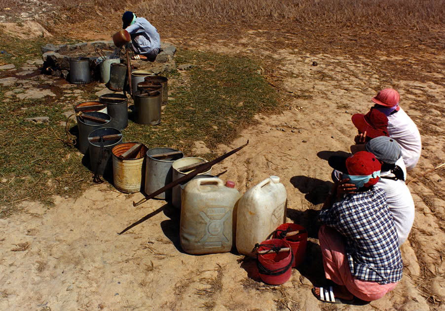 Residents queue for domestic water. Photo: Oanh Nguyen |