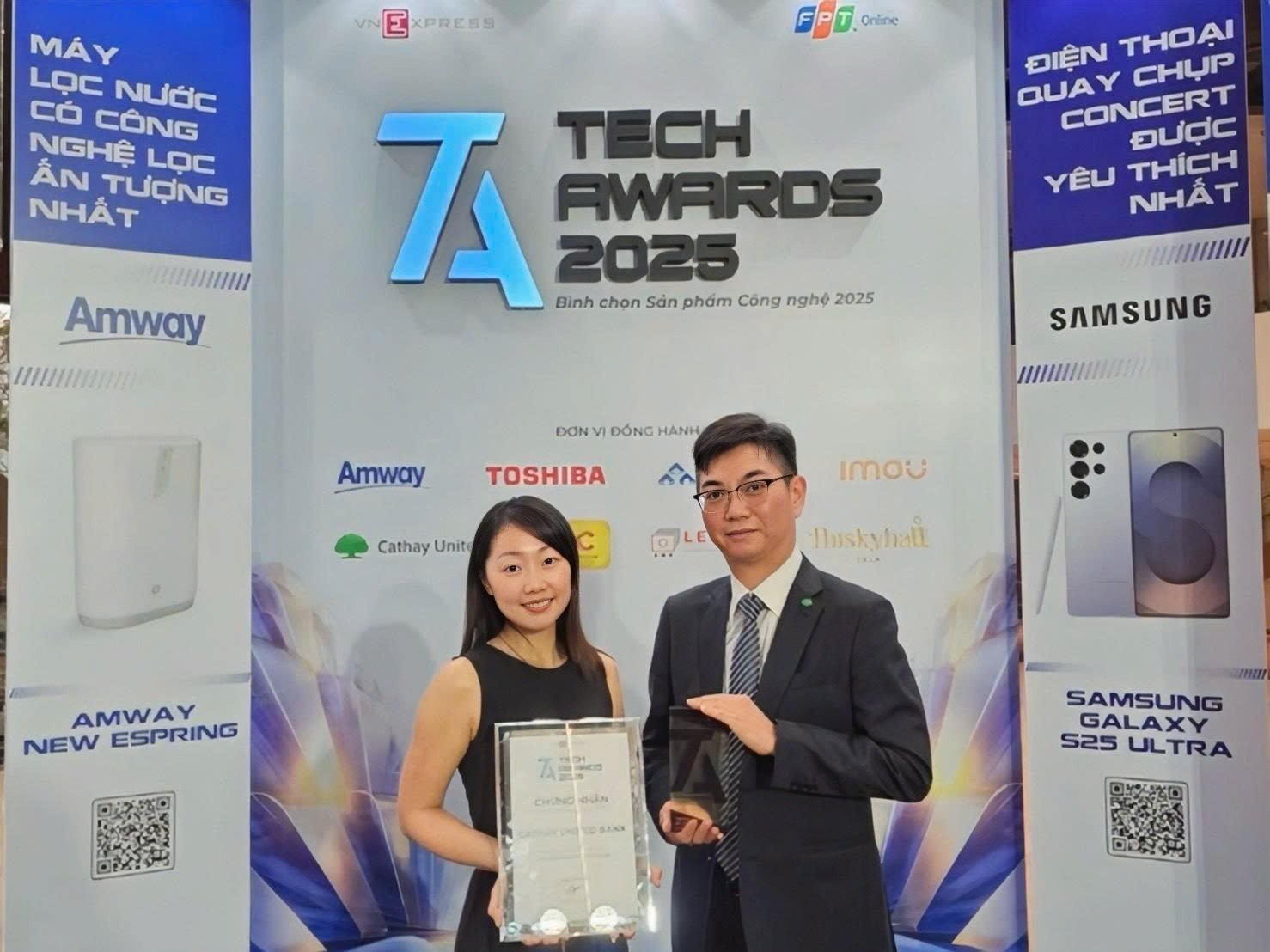 VJ Lu, General Director, and Hung Yun Liu, Head of Personal Banking, at the Tech Awards ceremony. Photo: CUBHCM |
