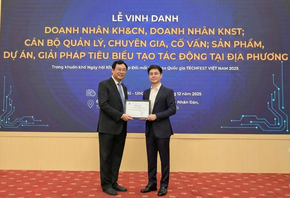 Mr. Bui Van Ninh (right), CEO of Dailyve, at the honoring ceremony within the framework of the National Innovative Startup Festival Techfest Vietnam 2025. *Photo: Dailyve*