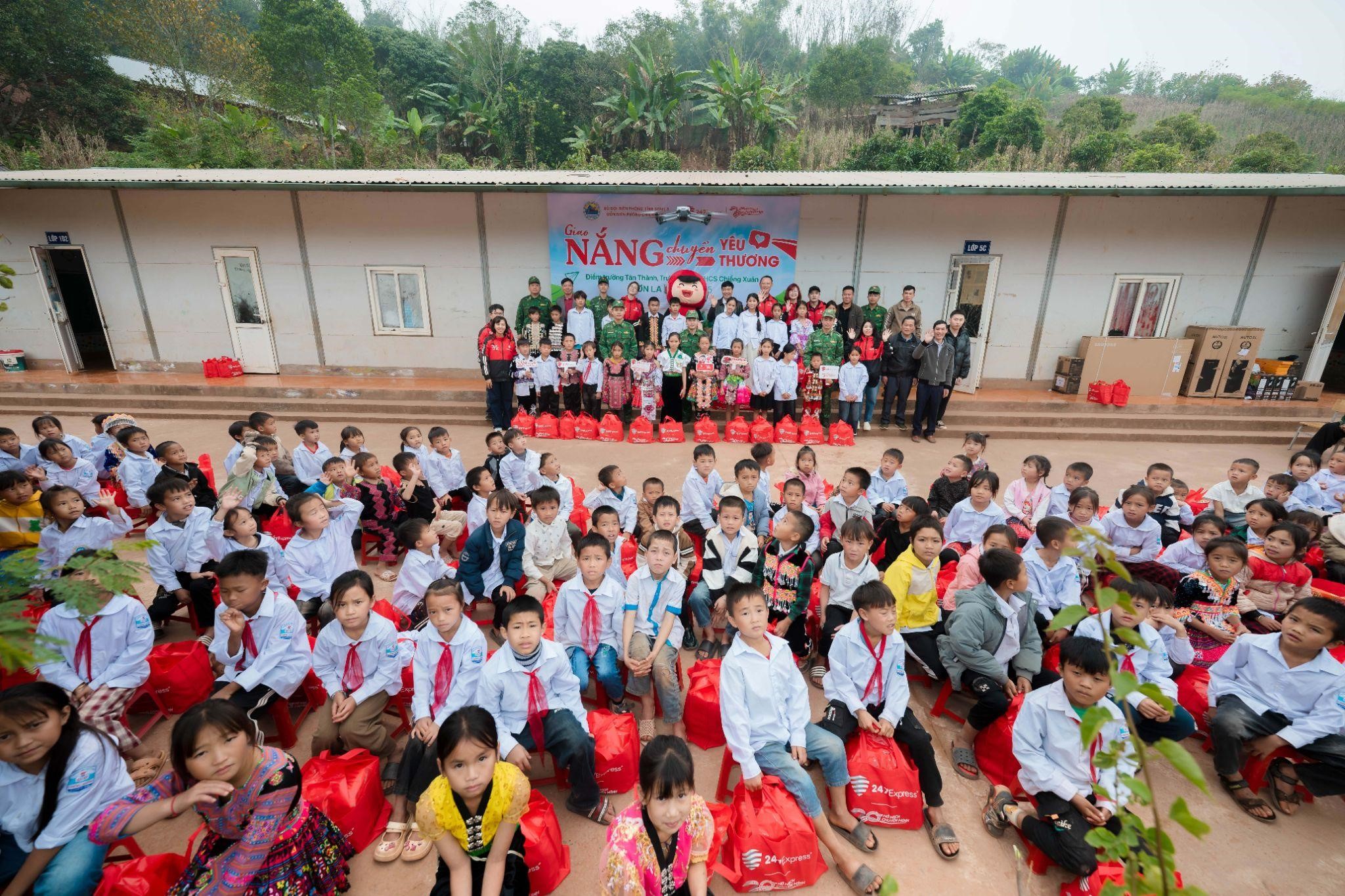 The activity took place at Tan Thanh school point (part of Chieng Xuan Primary & Secondary School) on December 5. It was part of the "Delivering Sunshine, Transferring Love" program, organized by 247Express in coordination with the Son La provincial border guard station.