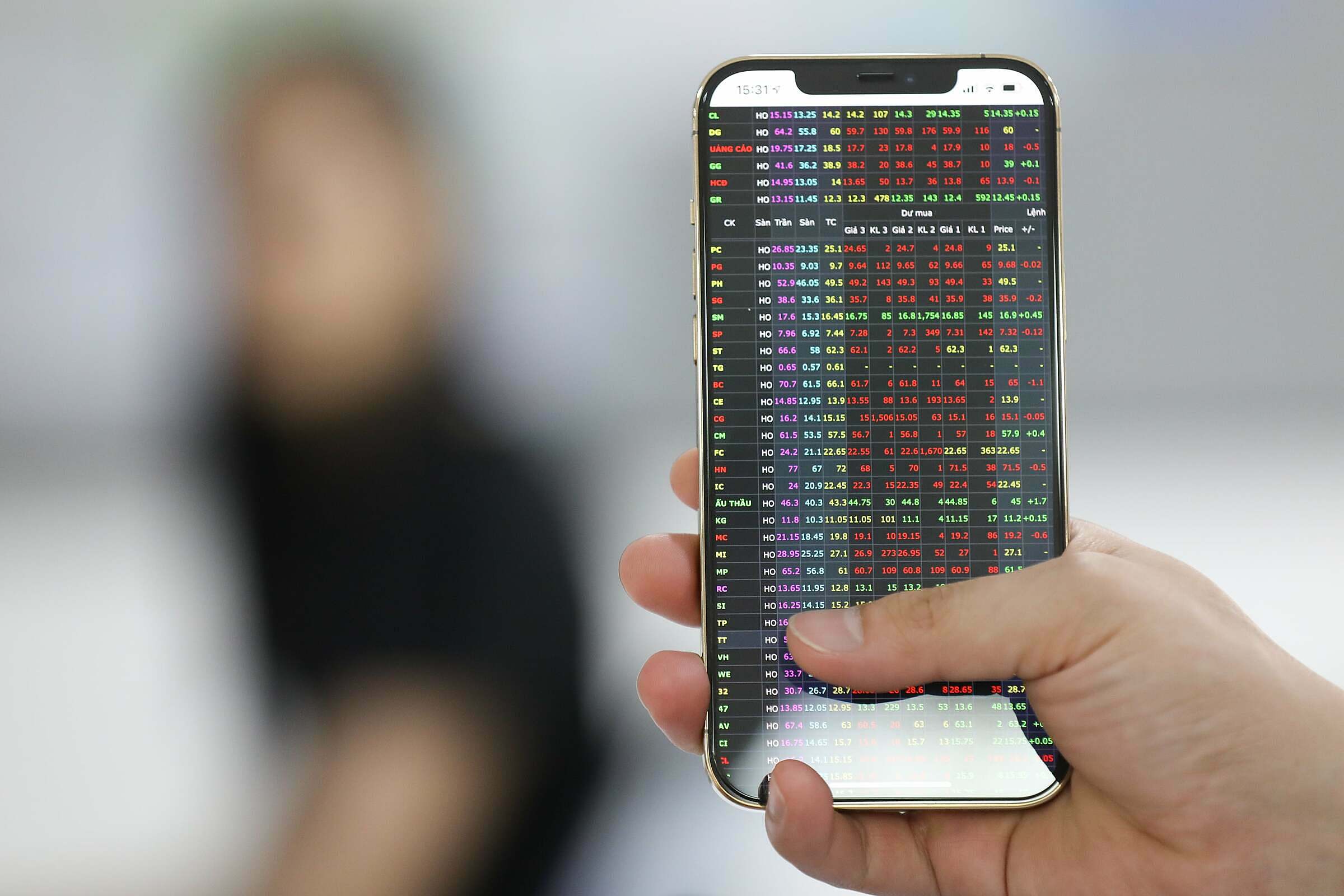 Investors monitor stock market prices on their phones. Photo: Quynh Tran |