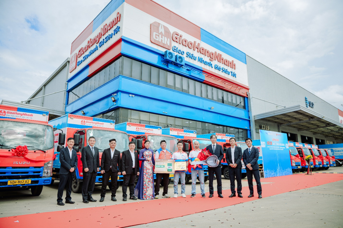 The handover ceremony marked a milestone of owning more than 1,500 delivery trucks. Photo: Giao Hang Nhanh