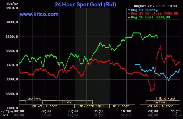 Global gold prices surged on 26/8. Chart: Kitco |