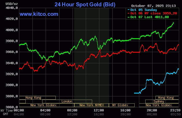 Spot gold currently trades at 4,011 USD per ounce. Gold futures reached the 4,000 USD mark on the evening of 7/10, now standing at 4,025 USD.