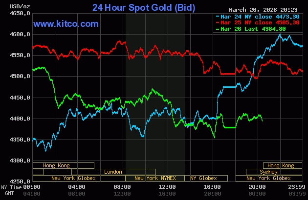 Global gold prices fell sharply on 26/3. Chart: Kitco.