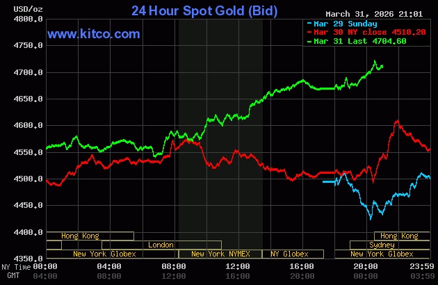 Global gold prices surged from the 31/3 session. Chart: Kitco |