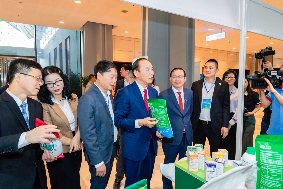Deputy Minister of Agriculture and Environment Phung Duc Tien (fourth from left) visits Greenfeed's exhibition booth. *Greenfeed* |