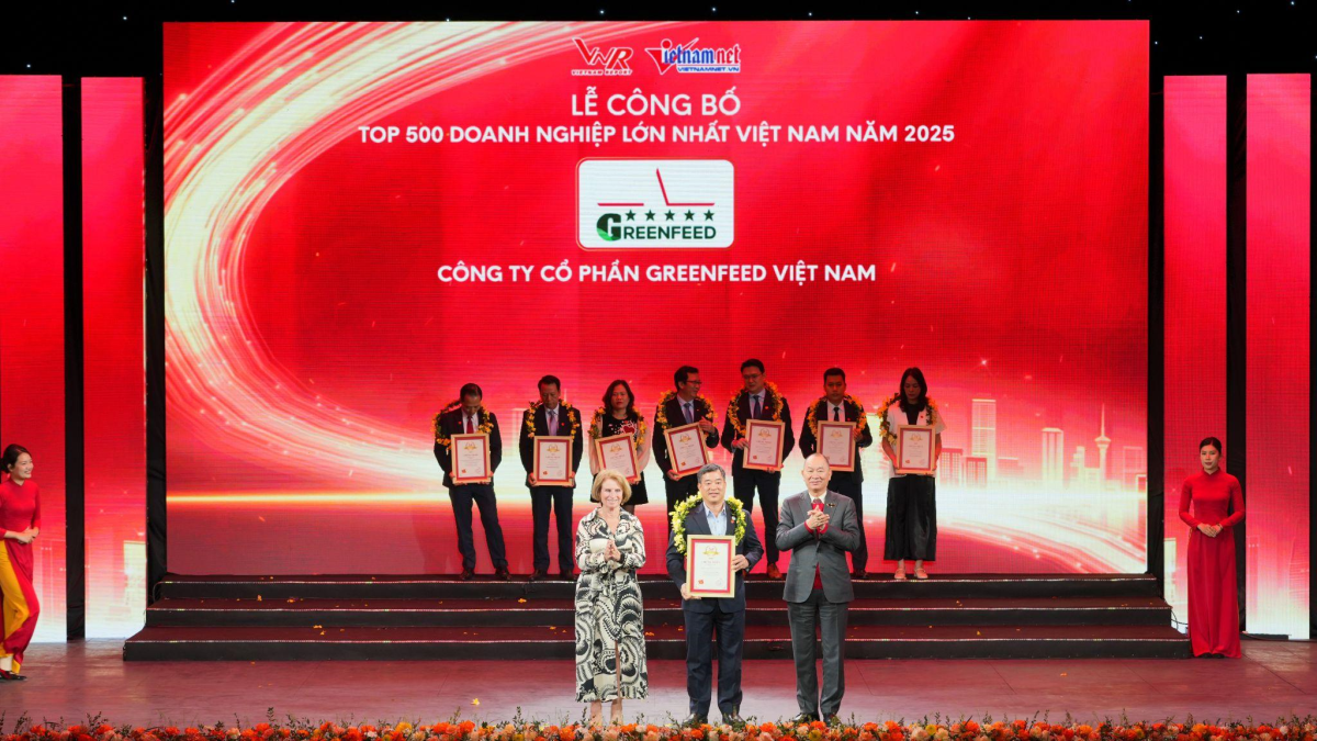 A Greenfeed representative accepts the award for Top 500 Largest Enterprises in Vietnam (VNR500) in 2025. Photo: Greenfeed |