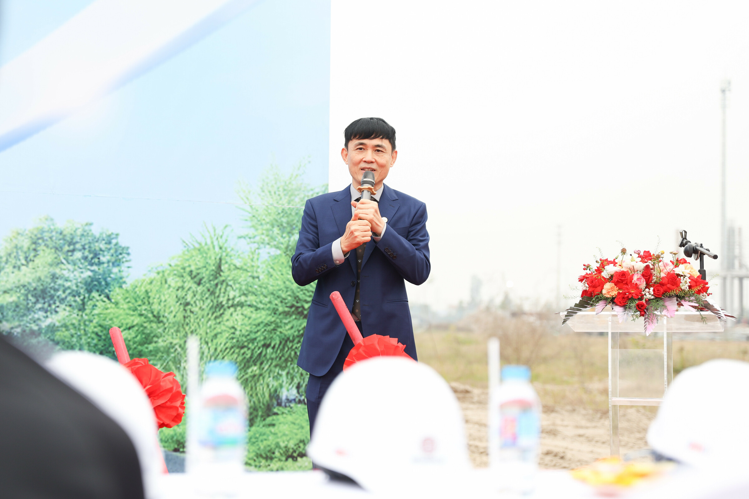 Dr. Nguyen Hoa Anh speaking at the factory's groundbreaking ceremony. Photo: LiveSpo |