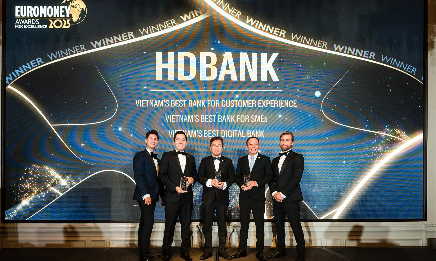 HDBank was the only Vietnamese bank to win three awards at the 2025 Euromoney Awards for Excellence held in Singapore on 2/9. The bank received accolades for Vietnam's Best Digital Bank, Vietnam's Best Bank for Customer Experience, and Vietnam's Best Bank for SMEs.