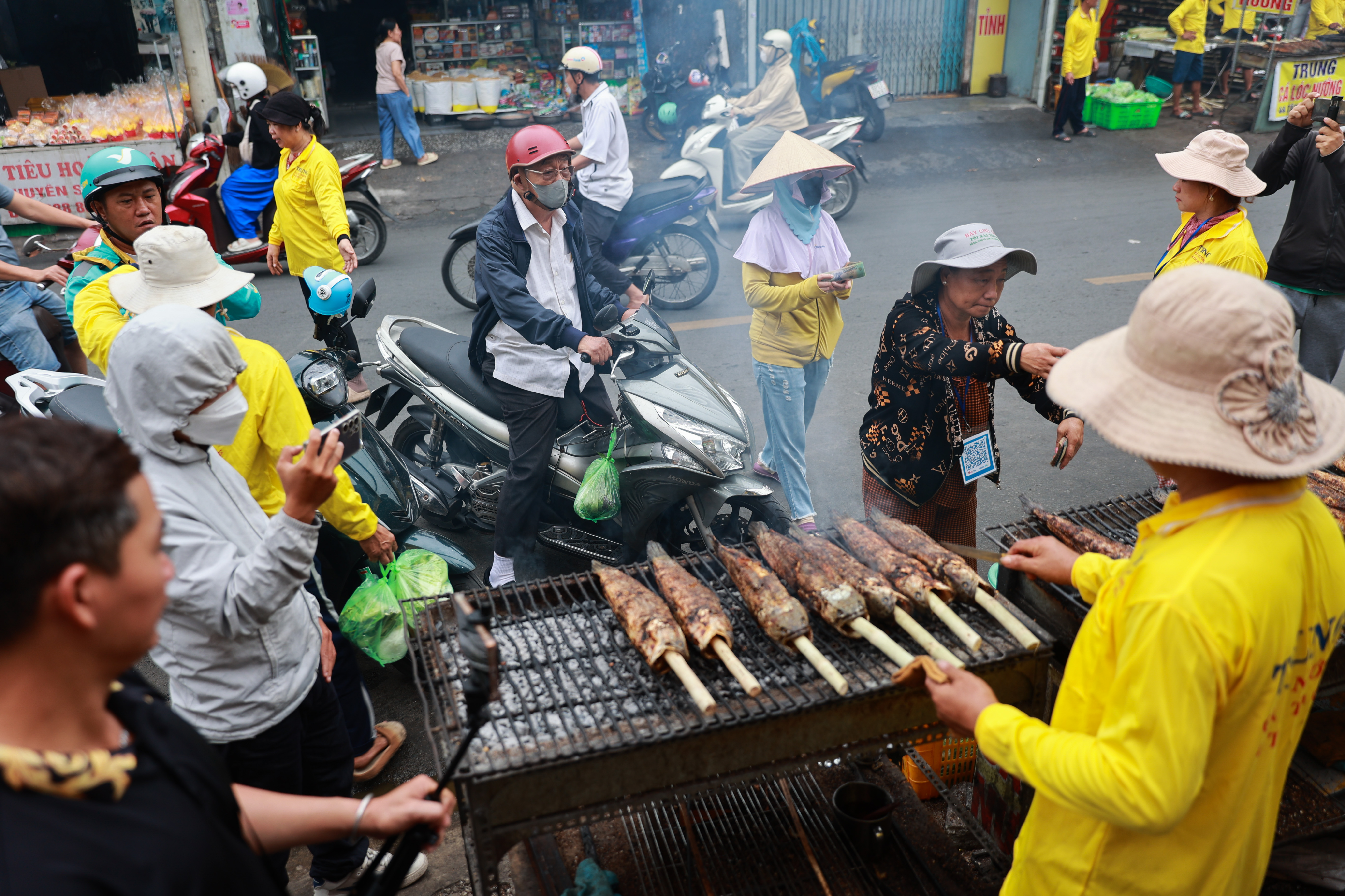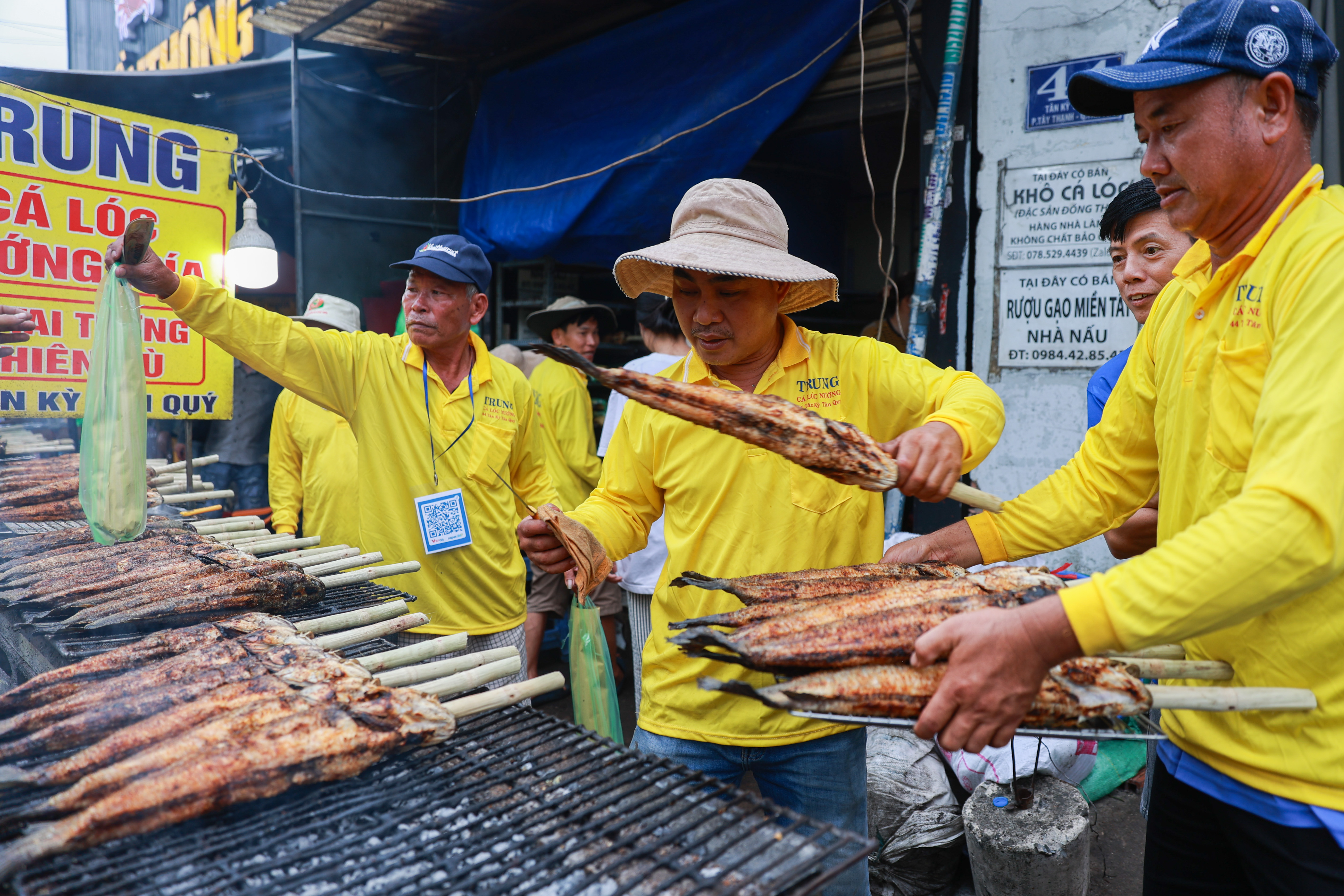 Nguyen Trung stated that on regular days, his family grills about 100 fish. However, for this special occasion, they sourced approximately 3,500 snakehead fish, totaling about 5 tons, and hired more than 30 seasonal workers. "This year, I sold a little less than previous years because my space was reduced", he said.