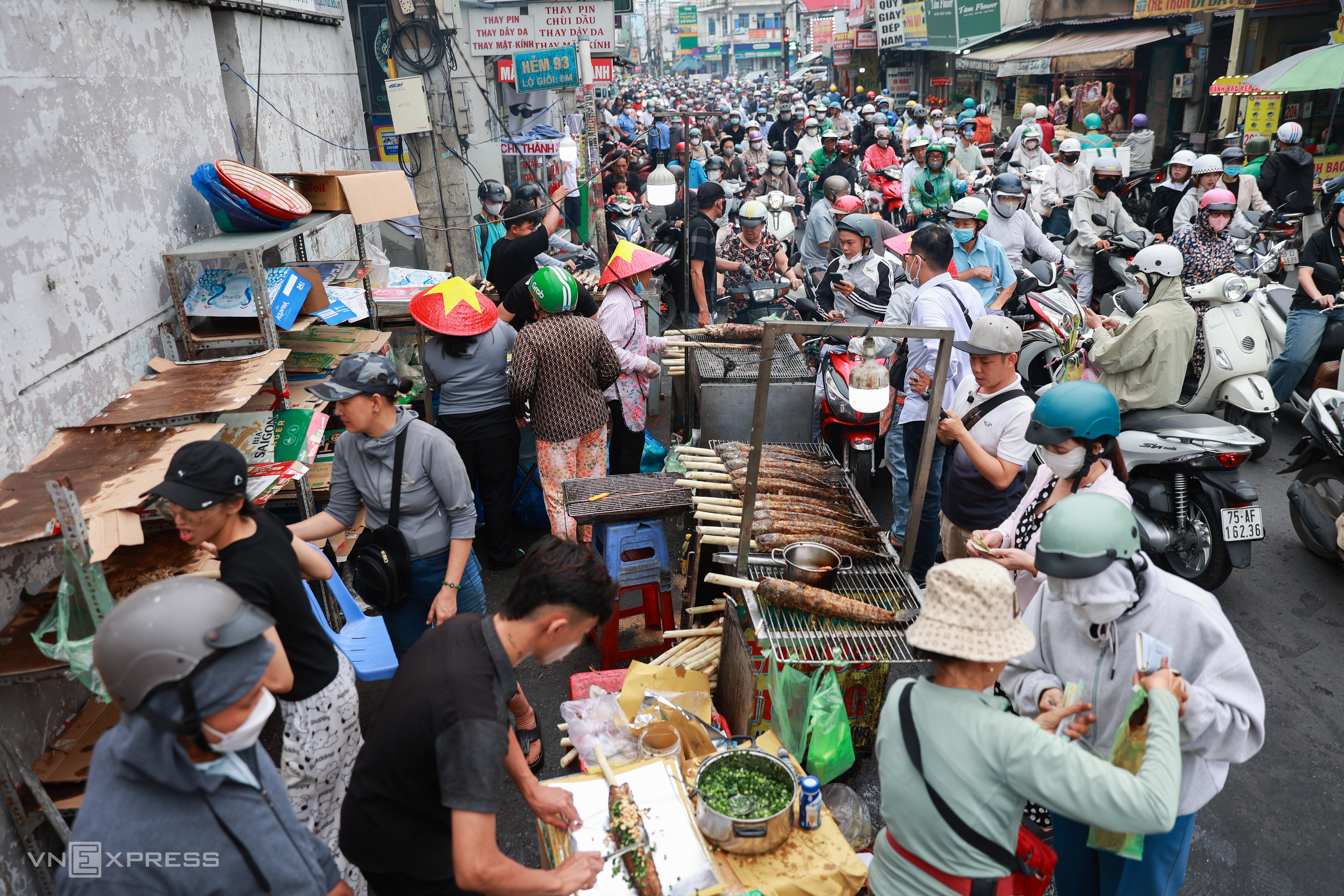 By 8h, the crowd of buyers had grown significantly, causing localized traffic jams at some points on Tan Ky Tan Quy street.