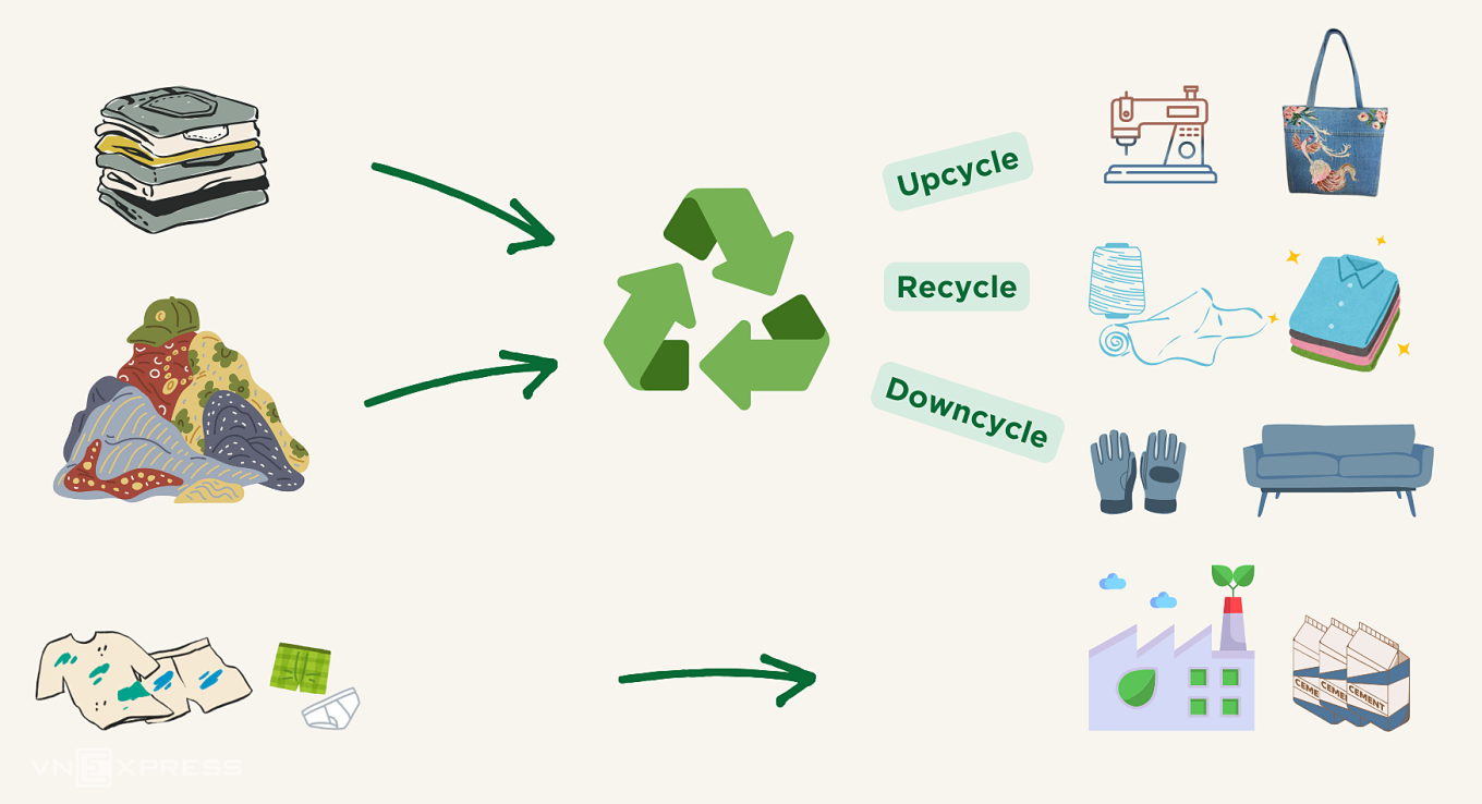 Levels of textile waste recycling. Graphics: Bao Bao |