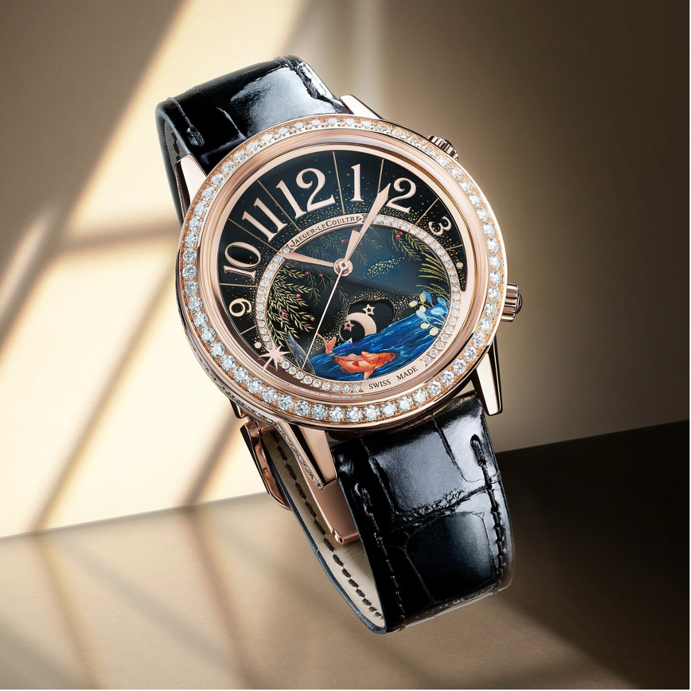 One of the trio of handcrafted Rendez-Vous Sonatina masterpieces has arrived in Hanoi for the launch of Jaeger-LeCoultre's new boutique. Globally, only 10 timepieces of this "Peaceful Nature – Koi" model have ever been created. The dial features a miniature scene of koi carp gazing at the moon, cleverly integrating a day and night indicator window. This watch was crafted by artisans from Jaeger-LeCoultre's Metiers Rare (rare crafts) division using black lacquer.