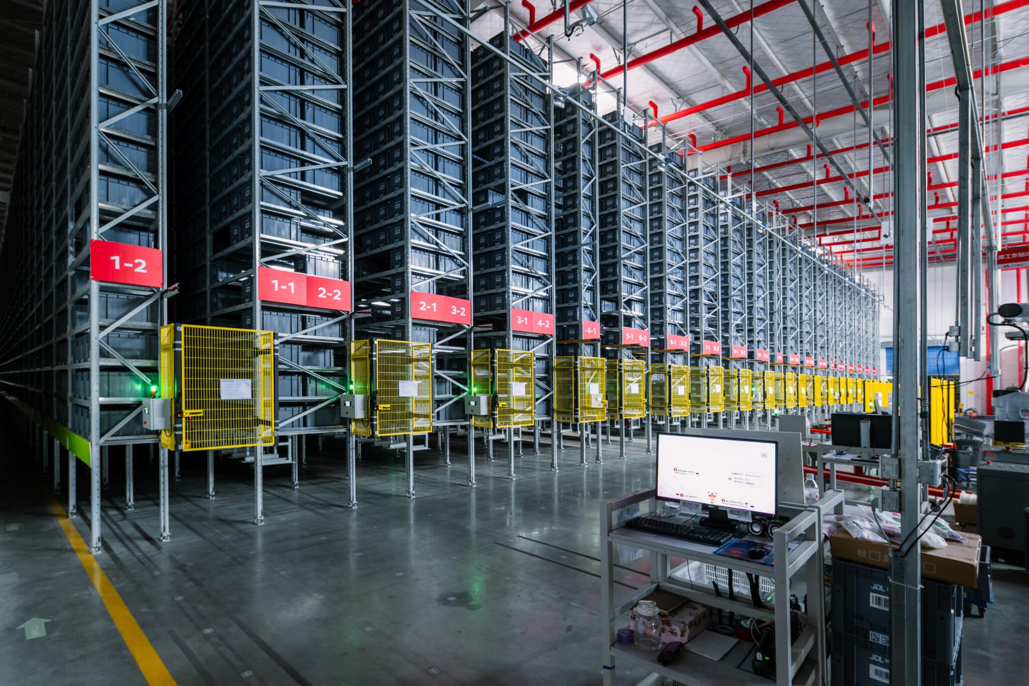 Thanks to Jingdong Logistics' langzutech goods-to-person solution, a pharmaceutical warehouse achieved four times higher storage density, 99% picking accuracy, and reduced processing costs per order by up to 50%. *Jingdong Logistics*