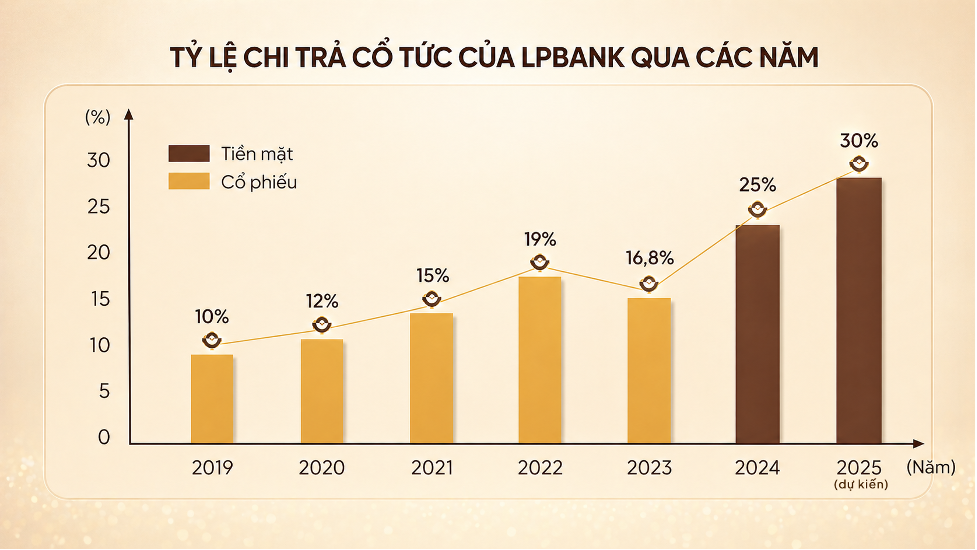 in addition to its VIFC entry, LPBank plans to pay a cash dividend of 30% from its pre-tax profit of over 14,268 billion VND in 2025. this represents a high payout rate in the market, reflecting the board of directors' commitment to enhancing shareholder benefits.