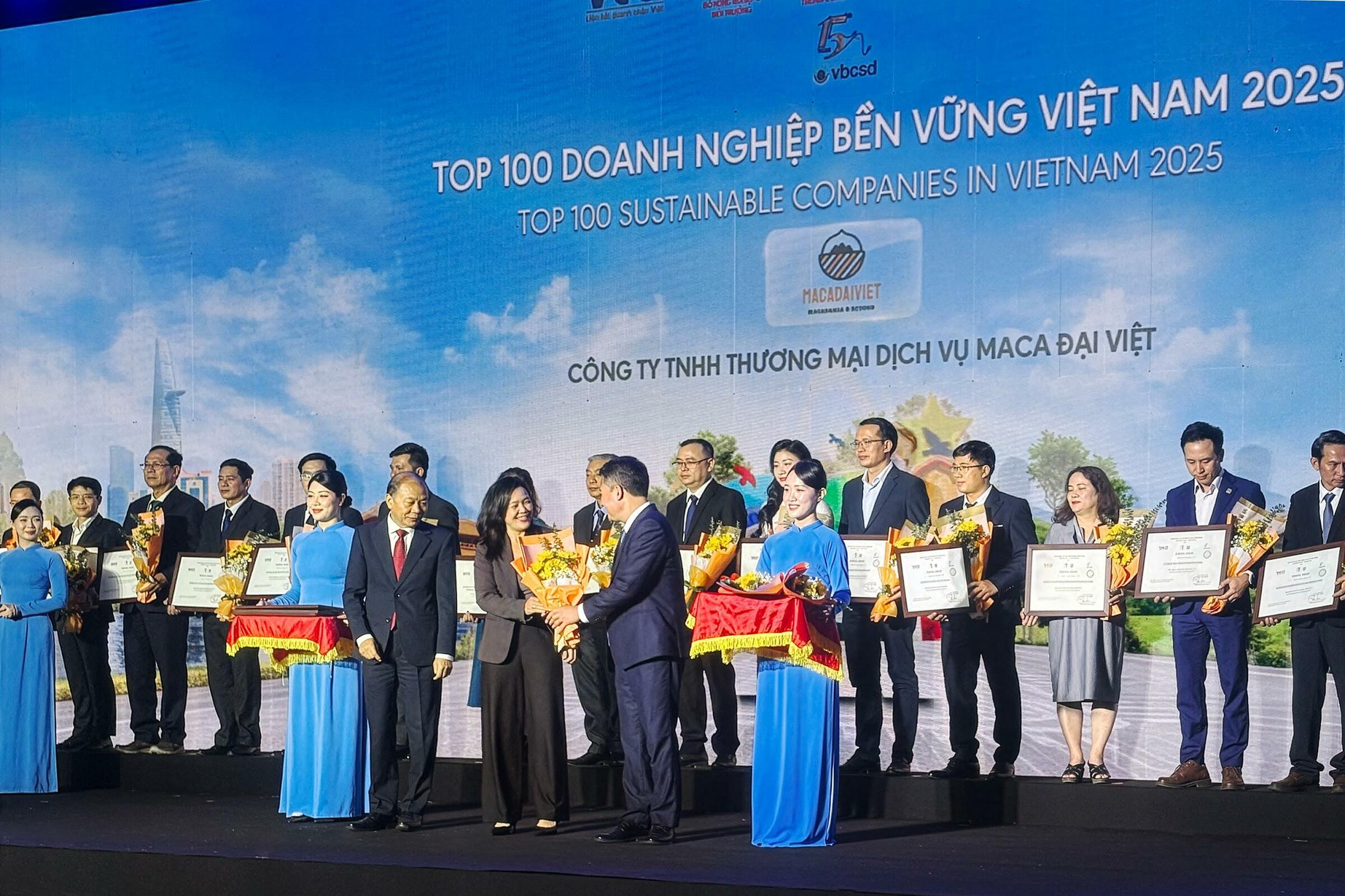 Maca Dai Viet representative receives the "Top 100 sustainable businesses of Vietnam 2025" award. Photo: Maca Dai Viet