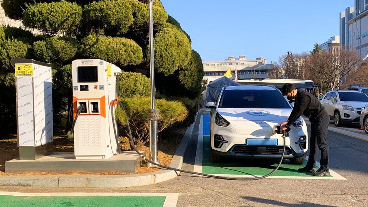 A person charging a car in South Korea. Photo: Koreatimes