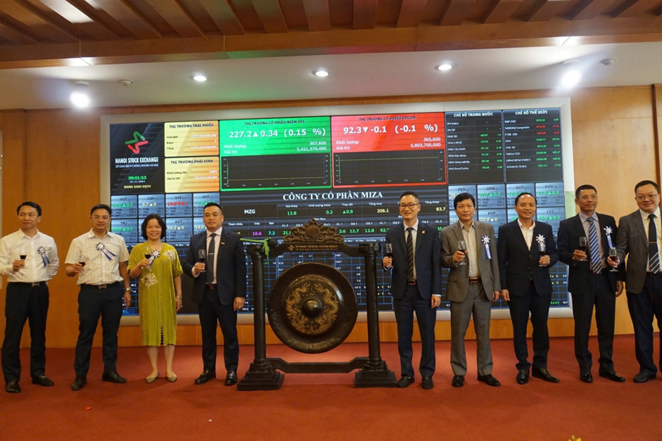 Representatives ring the opening bell for the MZG stock trading session of Miza Joint Stock Company. Photo: Miza |