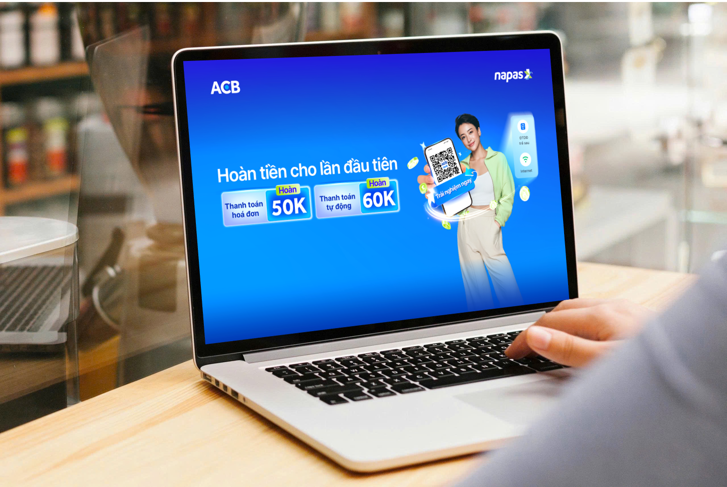 Customers receive up to 60,000 VND cashback when registering for online payments on ACB One. Photo: Napas