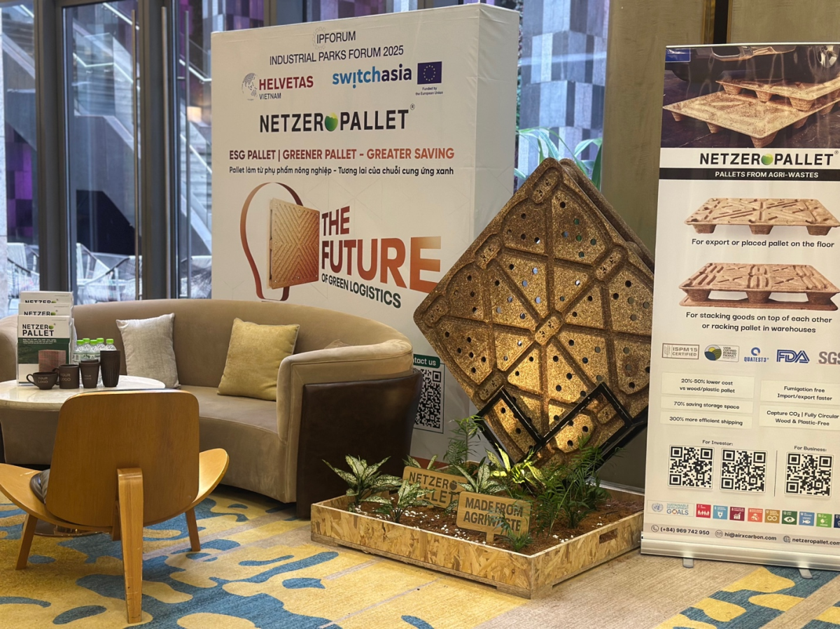 NetZero Pallet, a bio-pallet brand under AirX Carbon, was established in 2022. It specializes in producing recycled products from agricultural byproducts. NetZero Pallet products are manufactured in Binh Duong using a heat-pressing process that combines plant fibers with recycled polymers.