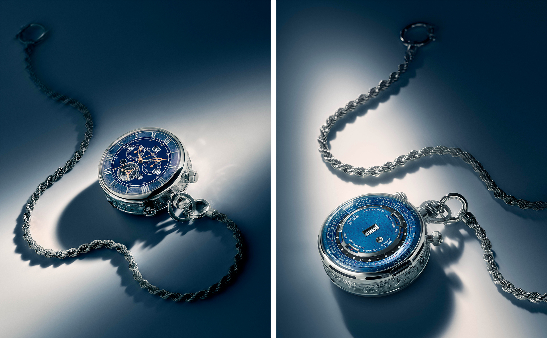 What makes the 150 heritage a phenomenon among collectors is its universal calendar mechanism, revealed through a hidden case back that can extend up to 180°. Engineers in Le Brassus created a mechanical computer that simultaneously tracks humanity's most important calendar systems: the gregorian solar calendar, the jewish calendar, the islamic hijri calendar, the indian calendar, and notably, the lunar calendar. The watch accurately indicates the dates of major festivals such as: christmas, ramadan, lunar new year, or diwali between 1900 and 2099.