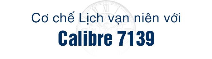 The calibre 7139 movement combines ergonomics with openworked craftsmanship. A breakthrough of this self-winding movement is its "all-in-one" crown system, allowing users to adjust all parameters—from day, date, month, to leap year and moon phase—without specialized tools or concern for affecting the movement. According to the brand, if the watch remains fully wound, the calendar only requires one adjustment in 2100 to align with the gregorian calendar.