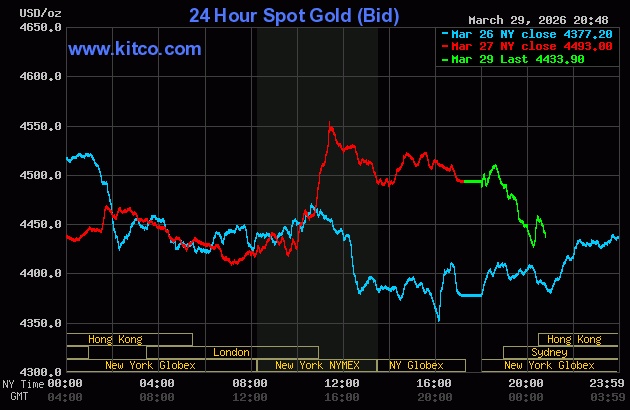 Global gold prices fell during the morning session on 30/3 (Hanoi time). Chart: Kitco |