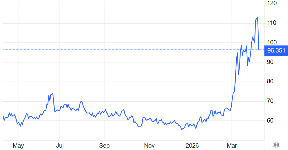 WTI crude oil price movements over the past year. Chart: Trading Economics