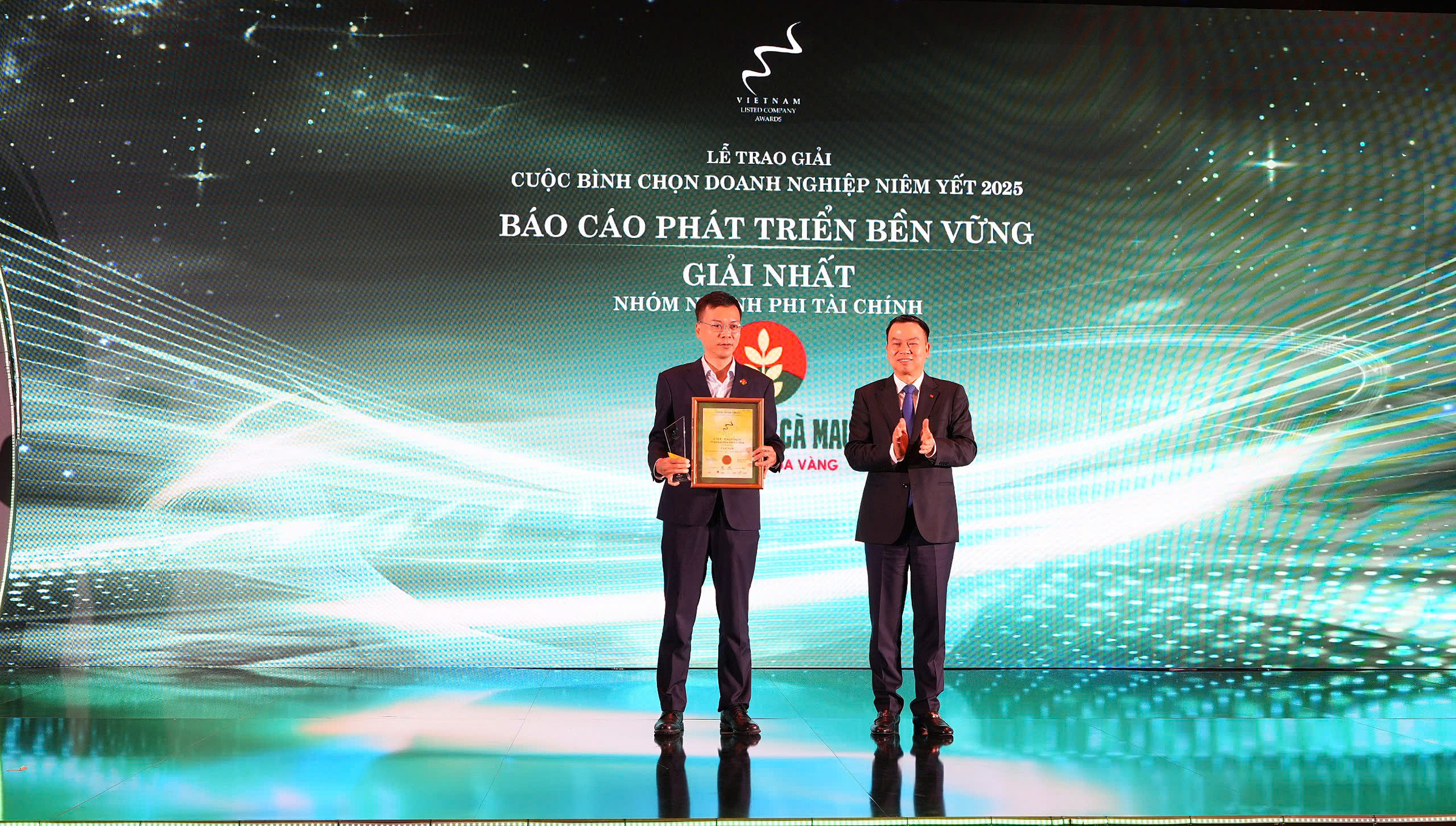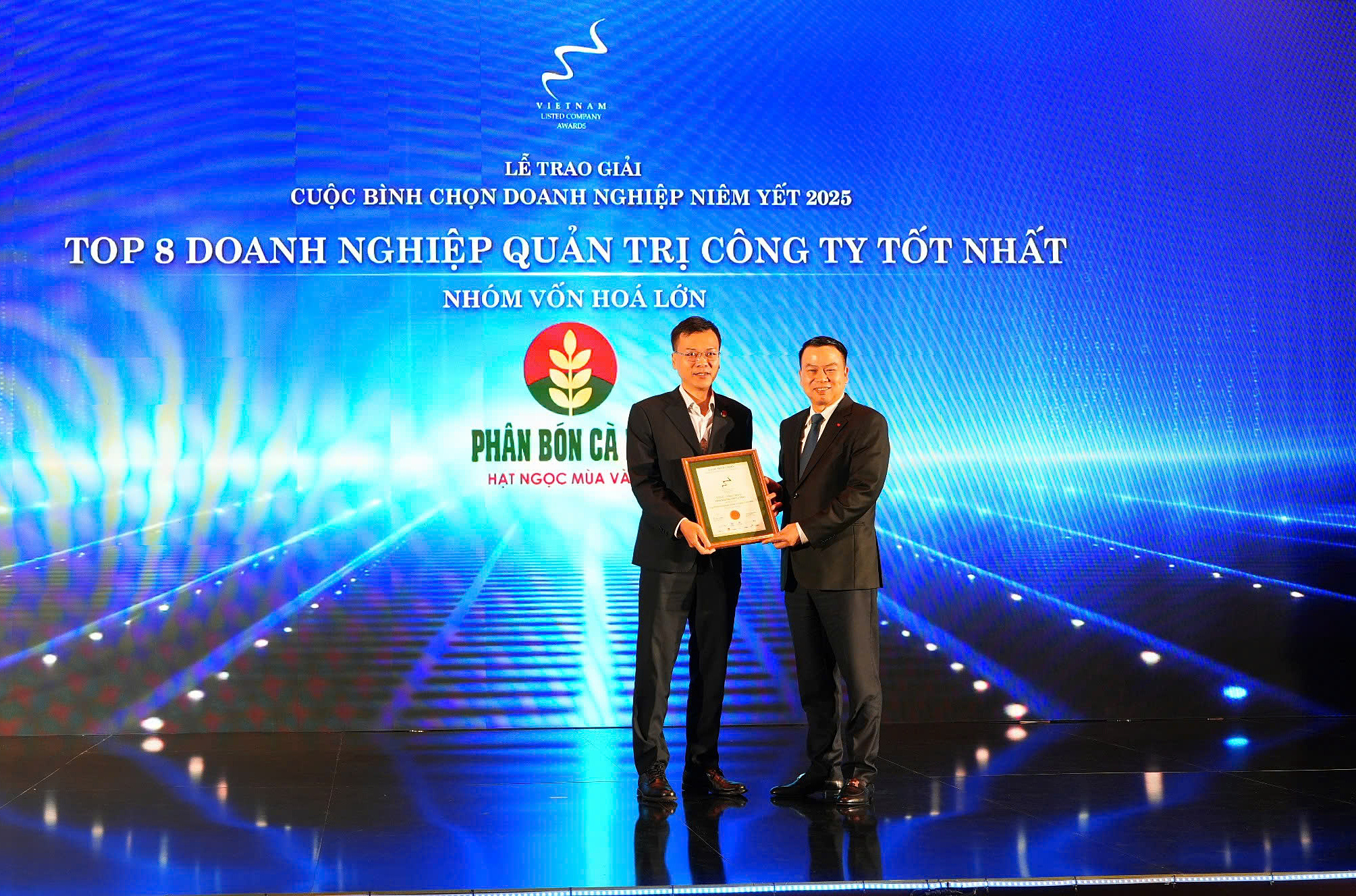 Ho Chi Minh City, 3/12 – Petrovietnam Ca Mau Fertilizer Joint Stock Company (PVCFC) received two awards at the 2025 Listed Enterprise Voting Program: Top 8 best corporate governance enterprises – large-cap group, and first prize for sustainable development reporting – non-financial sector group.