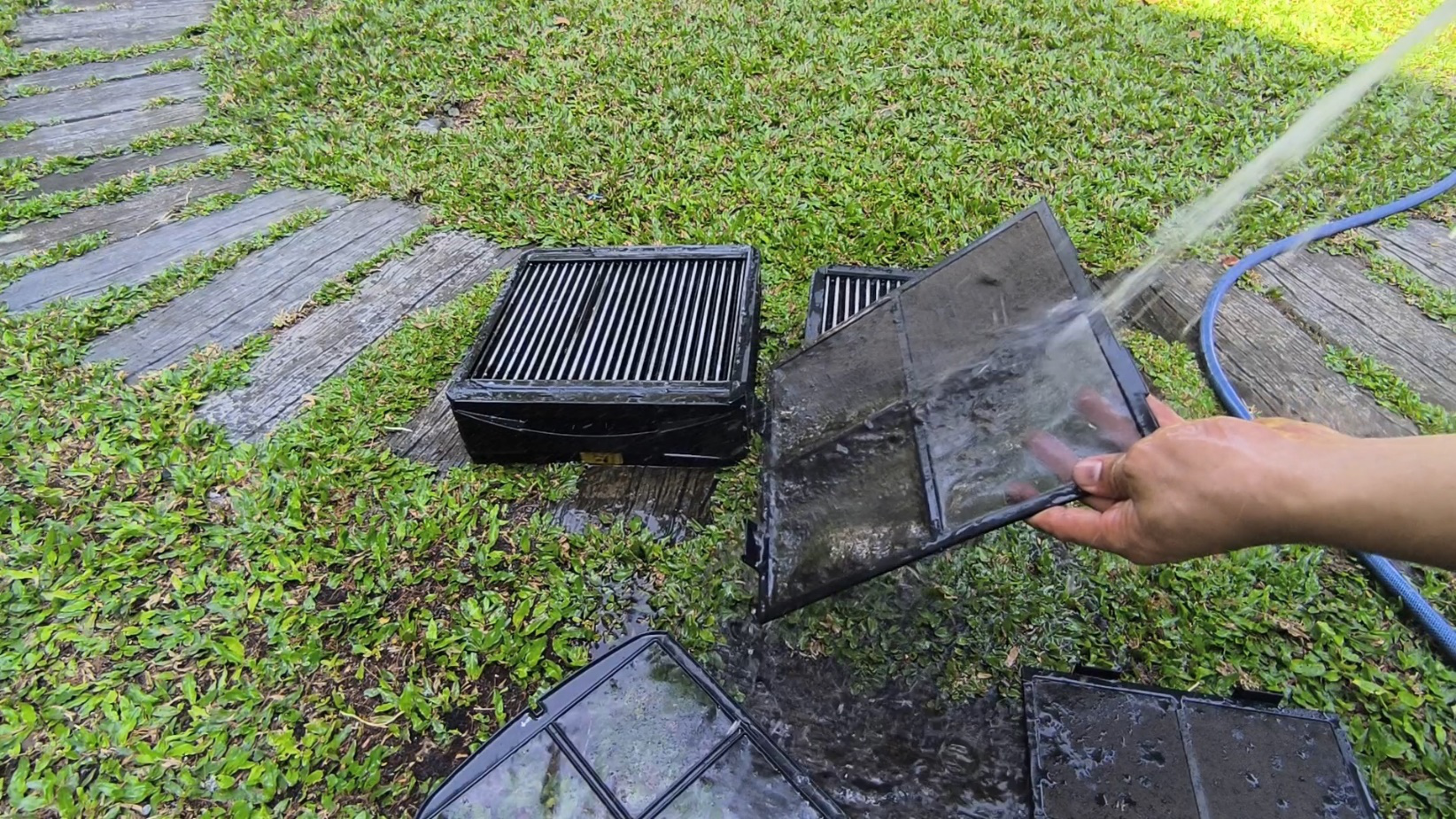 A customer cleans an Airdog filter after nearly one month of use. Photo: Airdog |