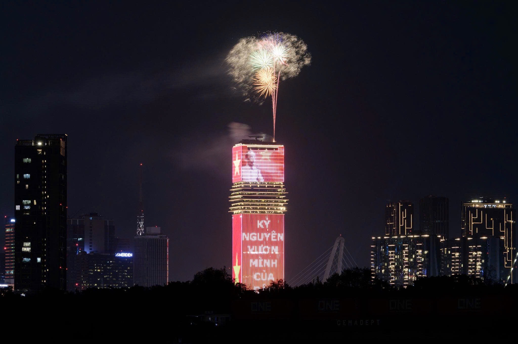 Fireworks launched from the 55th floor of the Saigon Marina IFC building. Photo: Saigon Marina IFC
