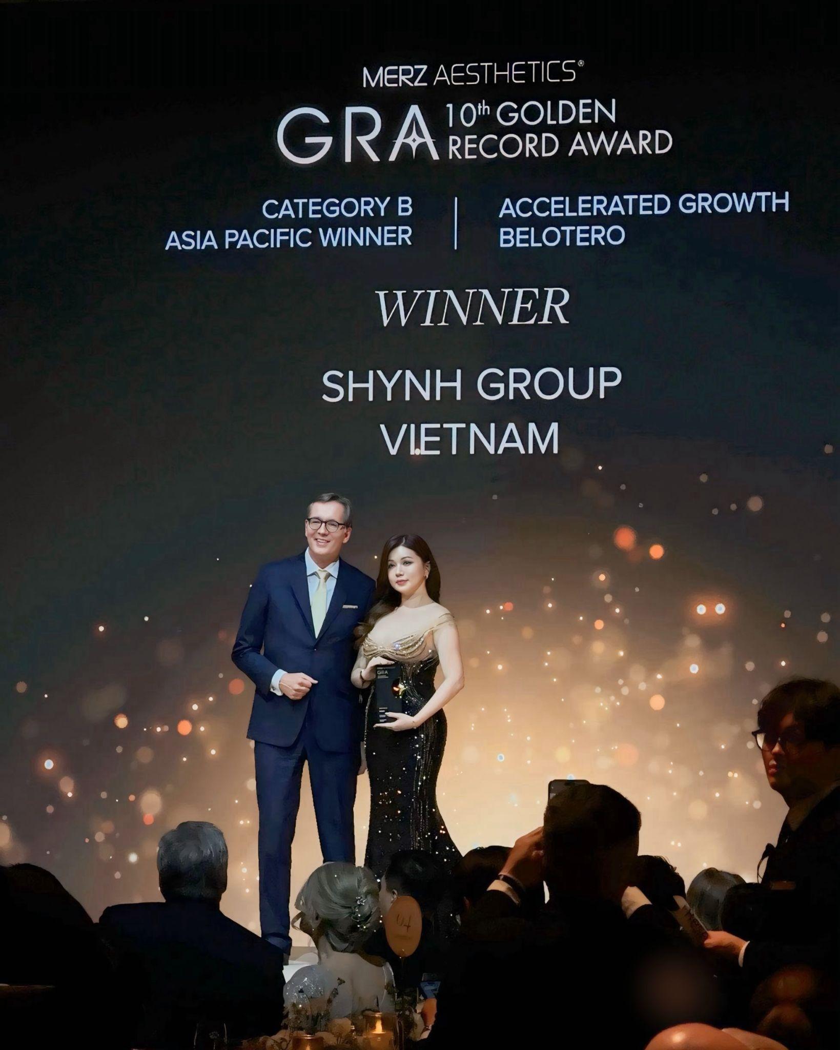 Shynh Group Chairman, Le Thi Xuan (right), receives the "Asia Pacific Winner" award at the "Merz Aesthetics Golden Record Award 2025" event. Photo: Shynh Group