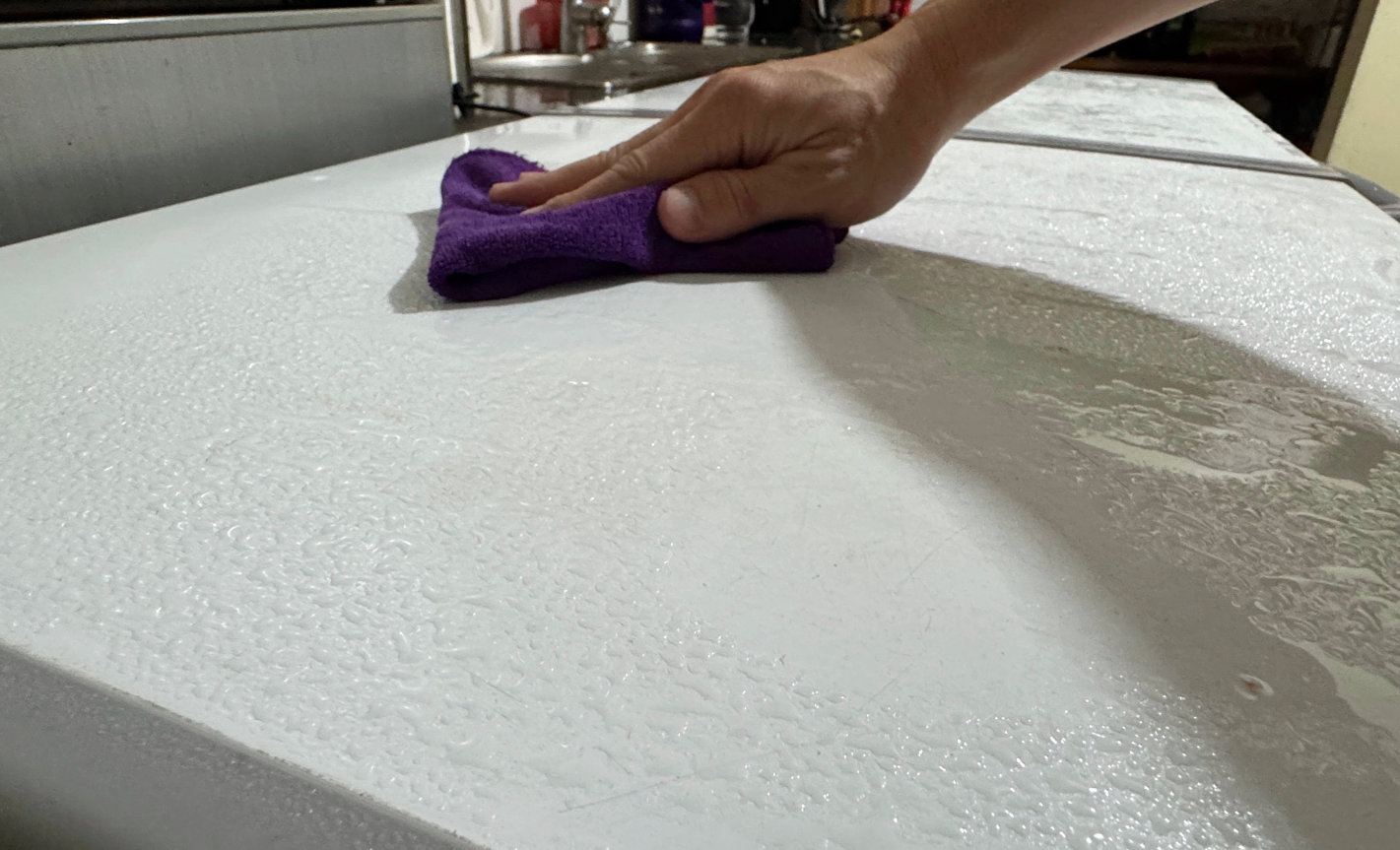 The refrigerator had condensation forming mottled spots on all five sides despite being wiped two to three times daily during the humid season in Hanoi. Photo: Hoang Giang. |