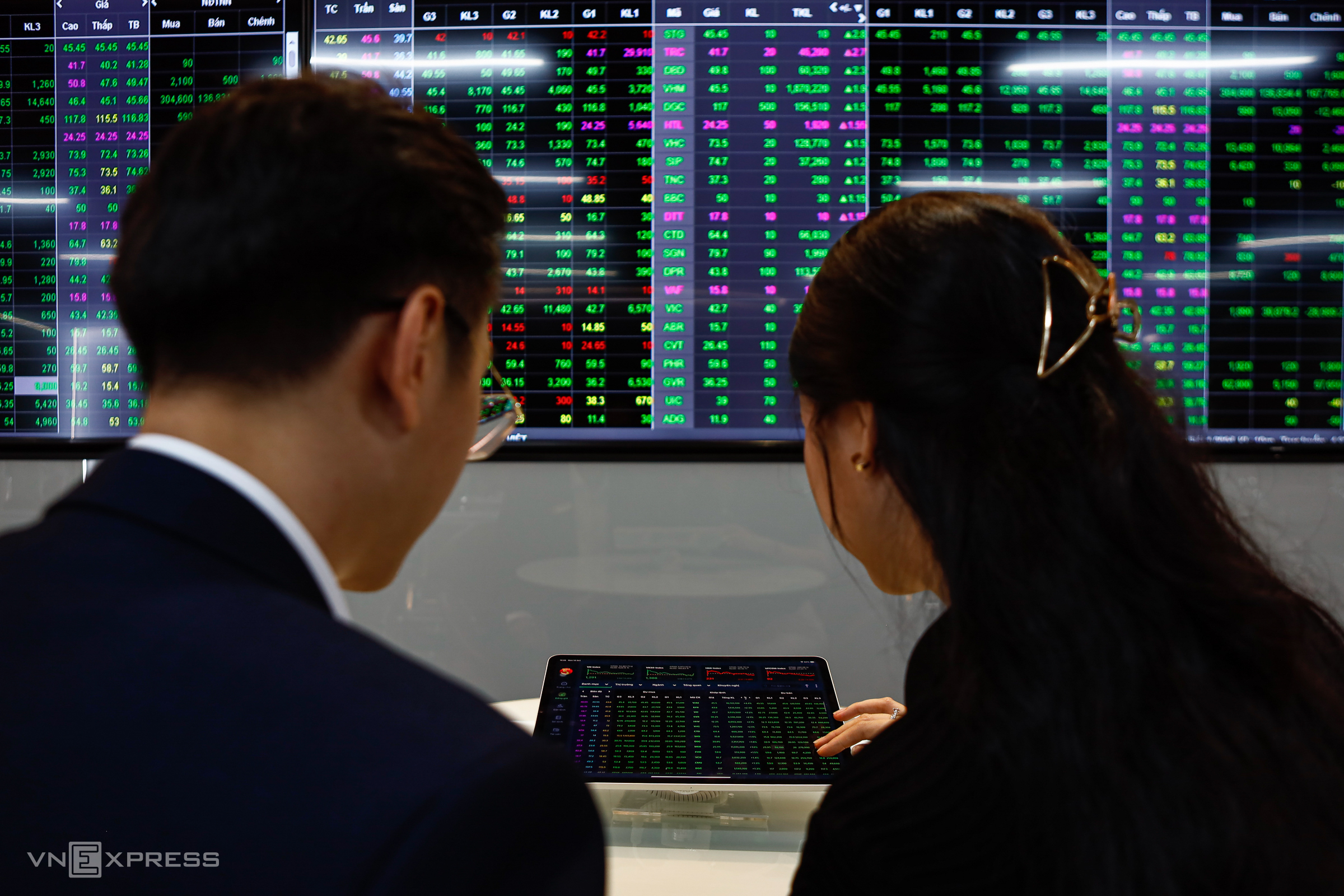 Investors watch the electronic board at a securities company's office in Ho Chi Minh City. Photo: An Khuong