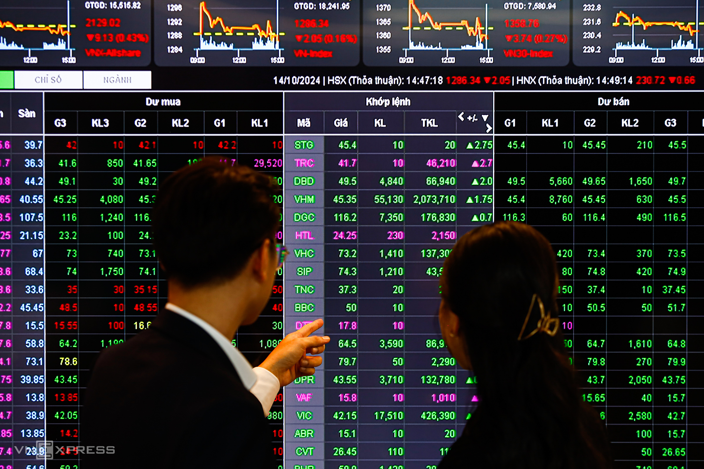An investor observes an electronic trading board at a securities company in TP HCM. Photo: An Khuong |