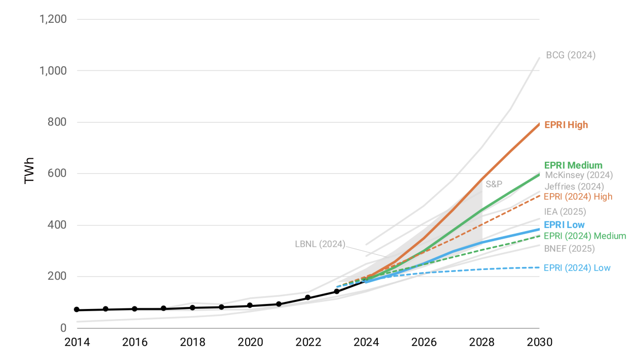 US data center electricity demand scenarios. Source: EPRI