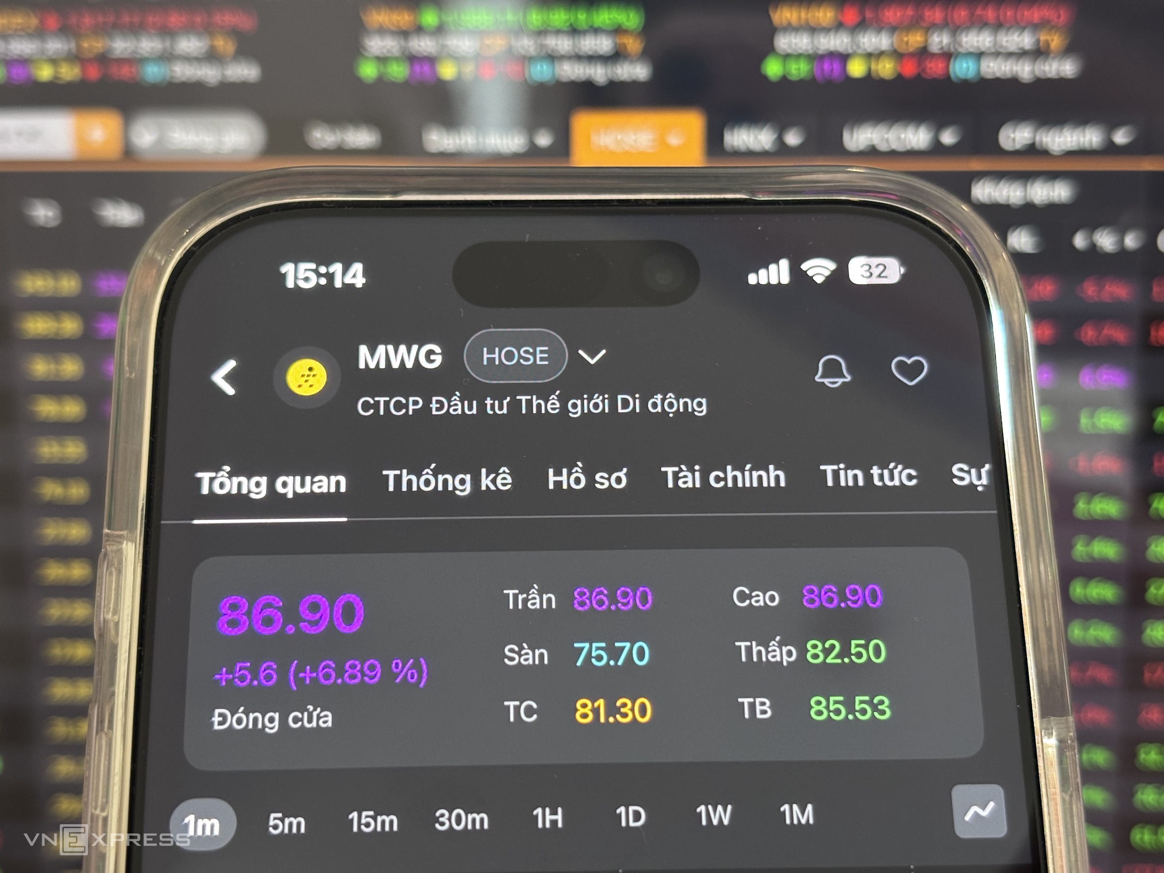 The HoSE floor still recorded seven stocks hitting their maximum allowed daily gain. MWG led the group of stocks providing the most support to the VN-Index. From nearly 10 AM, The Gioi Di Dong stock surged to its ceiling price of 86,900 dong per unit and maintained that level until the session's close. MWG's market price is currently at its highest in approximately one and a half months.