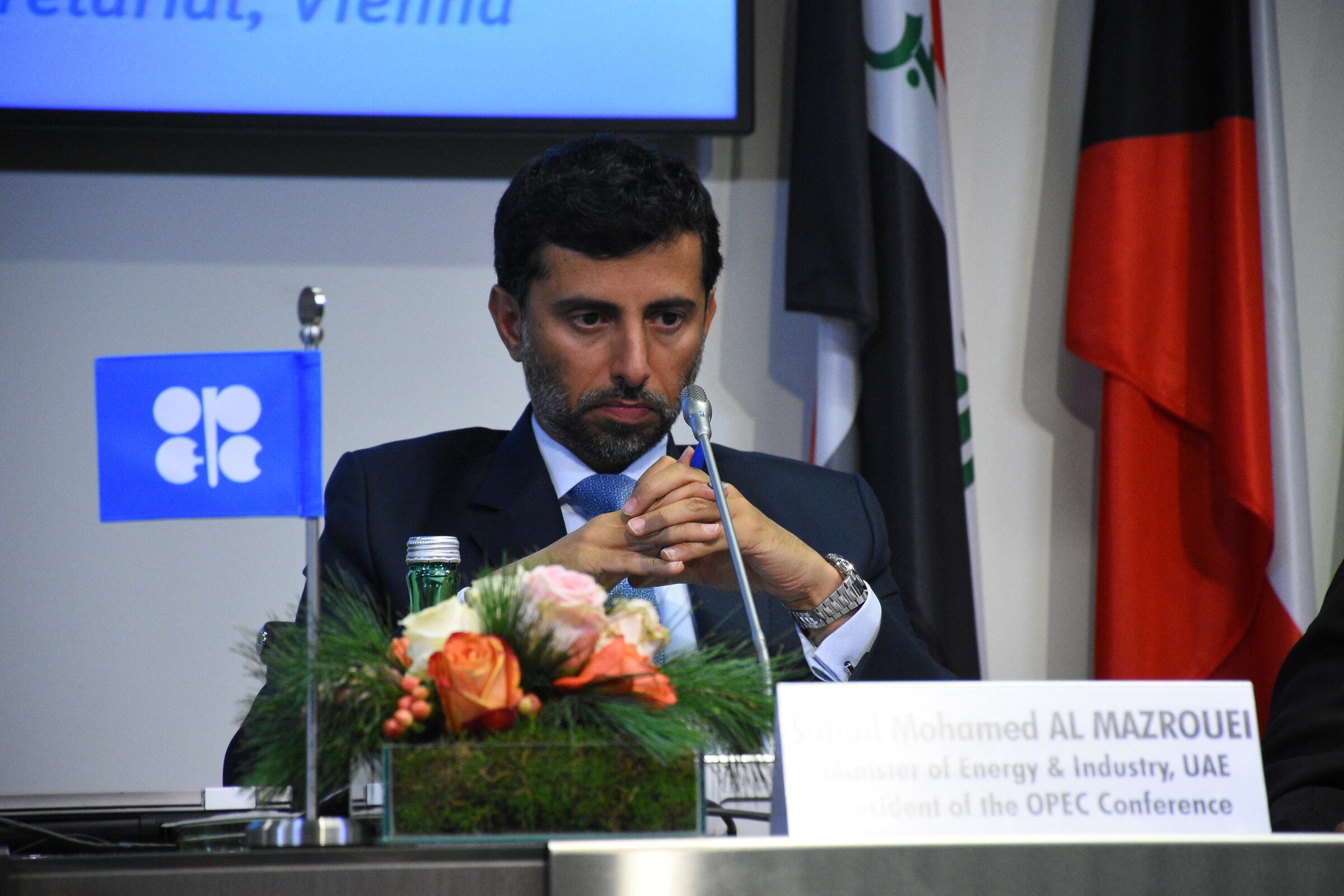 Energy Minister Suhail Al Mazrouei at a press conference following the OPEC ministerial meeting in Vienna, Austria on 7/12/2018. *AFP* |