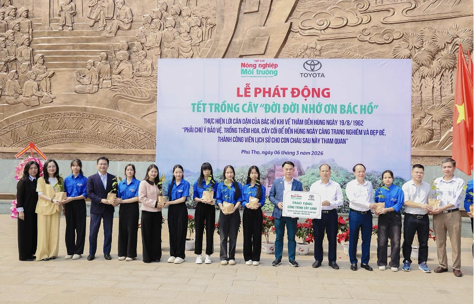According to Toyota, environmental protection is a key pillar in its long-term development strategy. On 6/3, the company continued its collaboration with the Ministry of Agriculture and Environment for the "Tree Planting Festival – Forever Grateful to Uncle Ho" event, providing funding to plant 125 *cho chi* trees at the Hung Temple Special National Historical Relic Site.