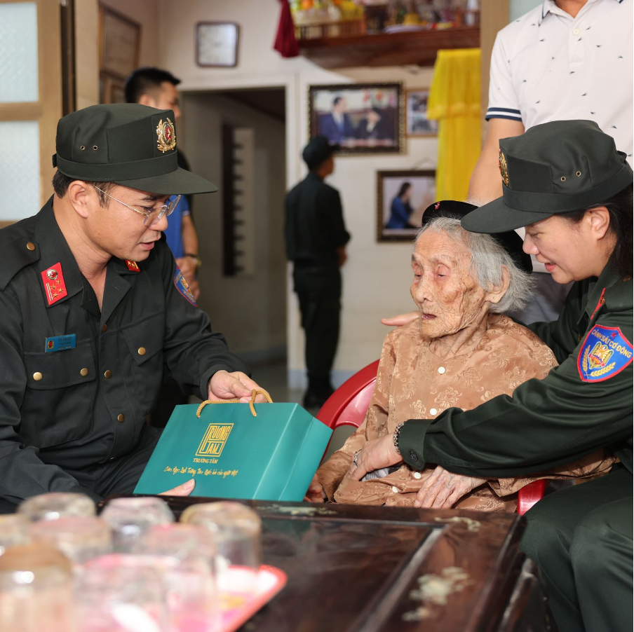 Truong Nhan, along with the Mobile Police Command, visits Vietnamese Heroic Mothers as part of the initiative to spread the message "Successor generation, proud generation". Photo: Truong Nhan |