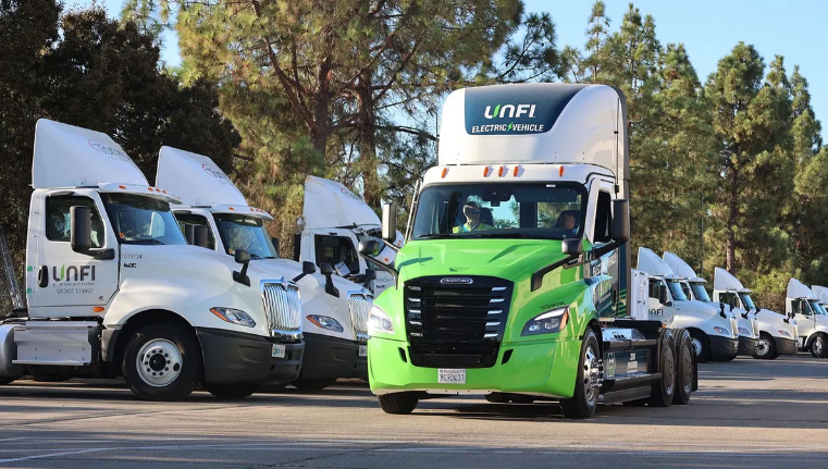 An UNFI electric truck in a parking lot. Photo: UNFI |