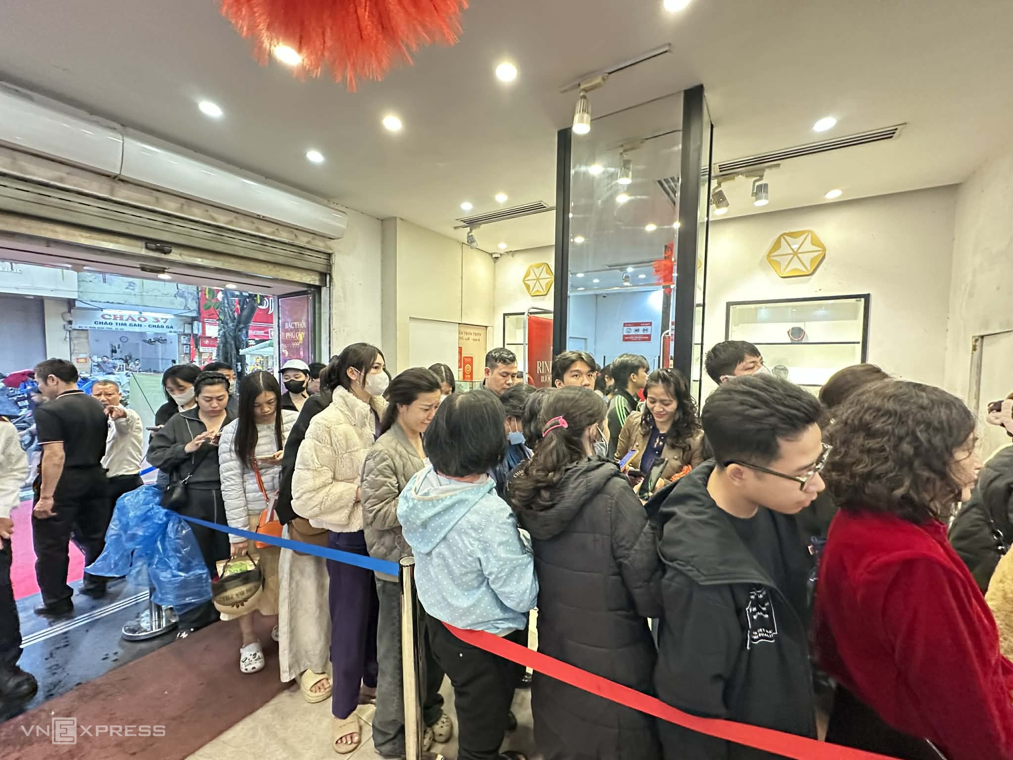 People queuing to buy gold and silver at Phu Quy store on Tran Nhan To street at 10h on god of wealth day morning. Photo: Viet Hung