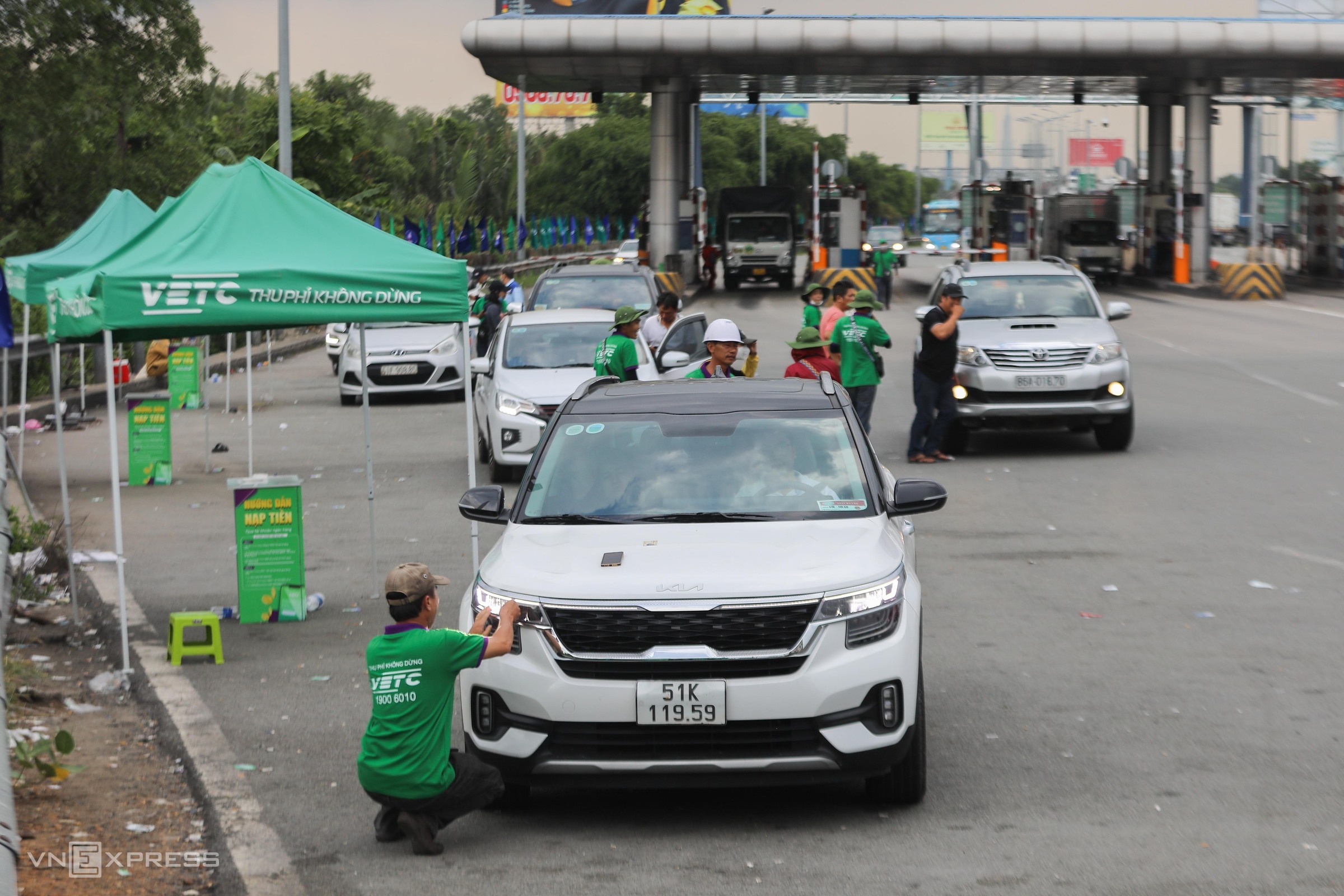 VETC non-stop toll collection tags being installed on the TP HCM - Long Thanh - Dau Giay expressway, 7/2022. Photo: Quynh Tran |