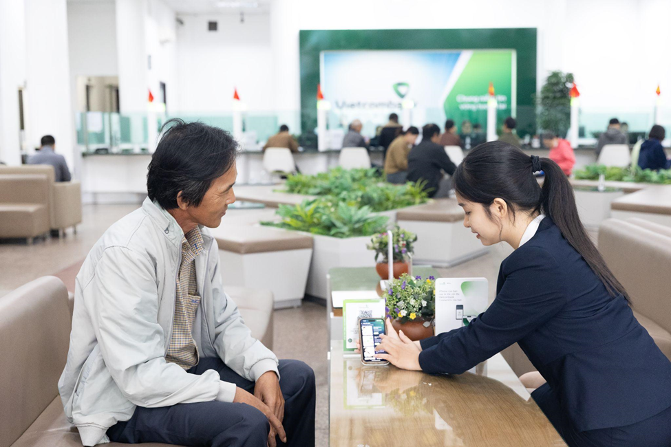 Bank staff guiding customers on online savings. Photo: Vietcombank |