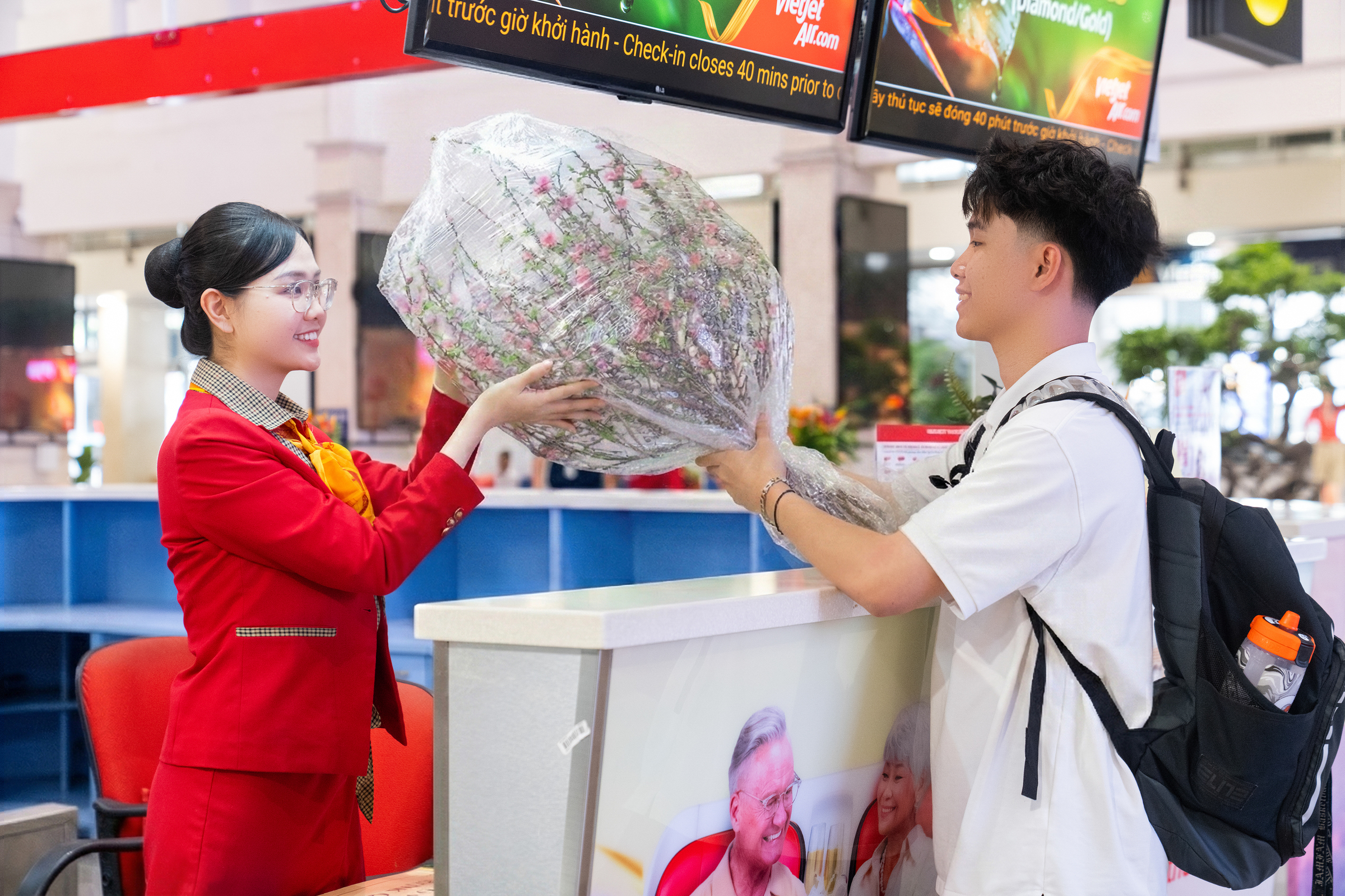 Passengers can register for the apricot and peach blossom transport service as checked baggage when booking tickets or after reservation. Registration is available via the Vietjet website, the Vietjet Air mobile application, authorized agents, ticket offices, and the call center. The airline advises passengers to complete their registration at least three hours before departure to ensure priority service.