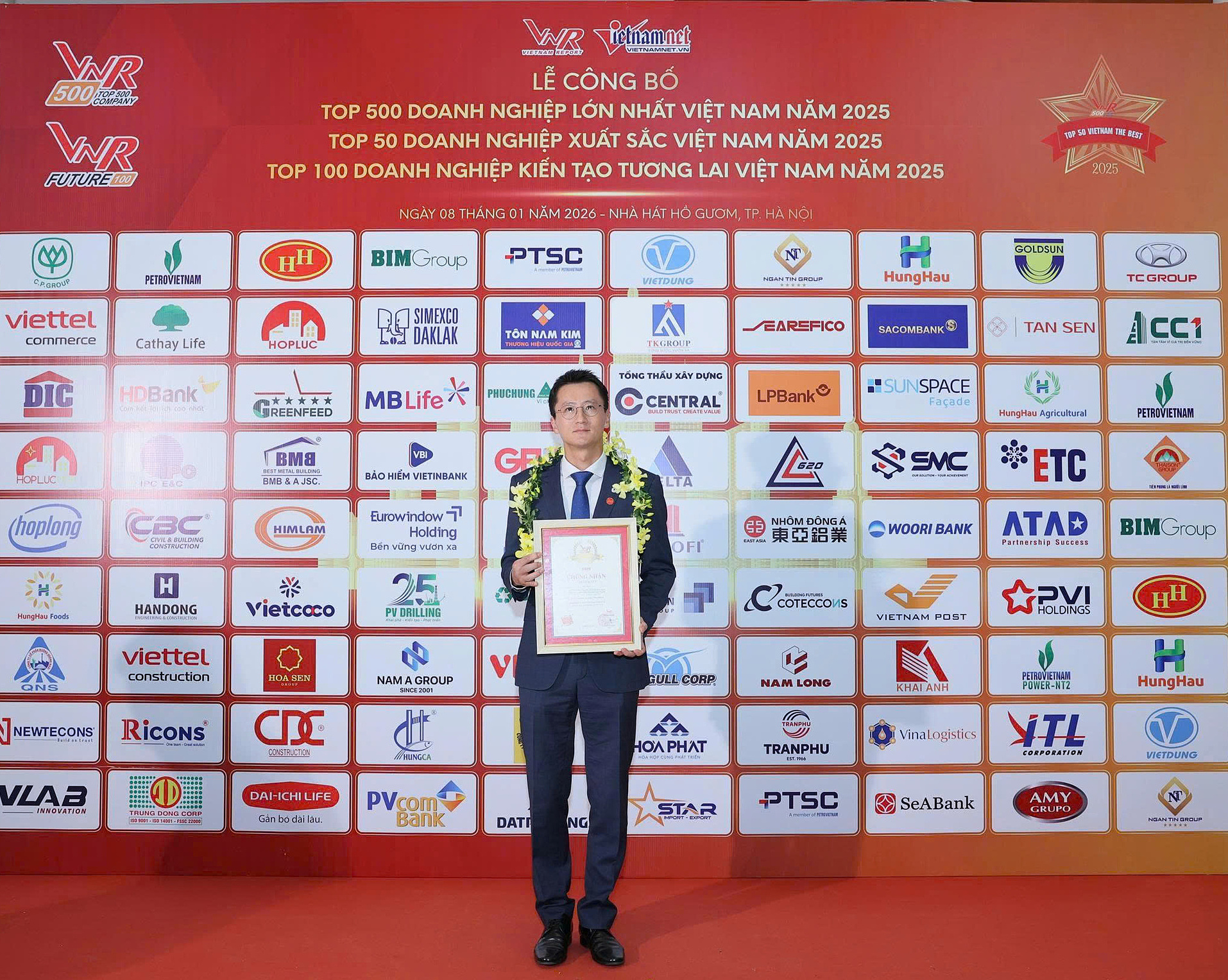 The award ceremony took place at Ho Guom Theater in Hanoi on 8/1. VNR500, conducted annually by Vietnam Report since 2007, is based on independent evaluations using international standards. It recognizes enterprises that positively contribute to the economy and business community. The 2025 survey results showed many enterprises improved operational efficiency, reflected in revenue, profit, order, and personnel indicators.