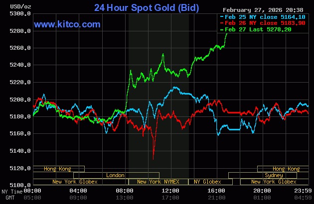 World gold prices rose sharply on 27/2. *Chart: Kitco* |